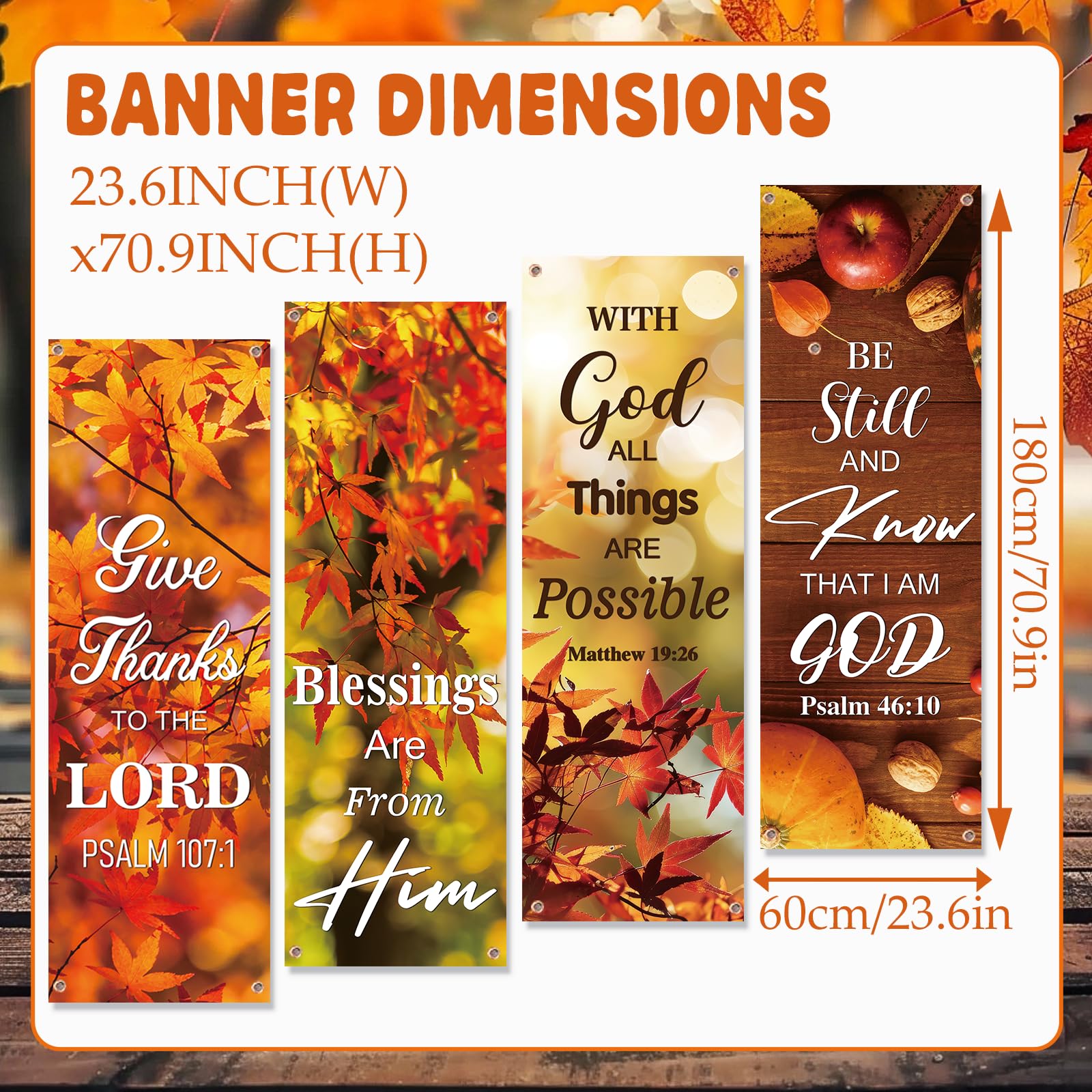 4 Pcs Fall Harvest Church Banners with Bible Verse Backdrop, Religious Praise Hanging Signs, for Church Decorations Sanctuary Wall Fall Harvest Banners