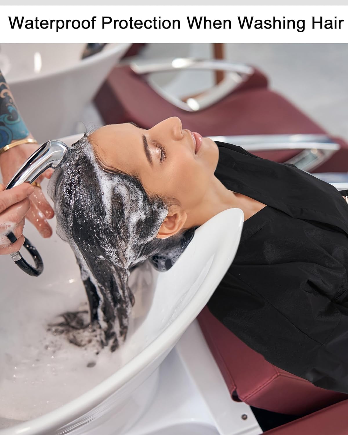 - 🌎[Quality Material] The salon smock is made from quality polyester material which allows comfort and longevity; This material does not tear or wear easily, ensuring that the smock robe remains in good condition even after long periods of use; The polyester also ensures that color remains vibrant, maintaining the stylish black of the robe; The salon client gown is waterproof that can add convenience and comfort to you.