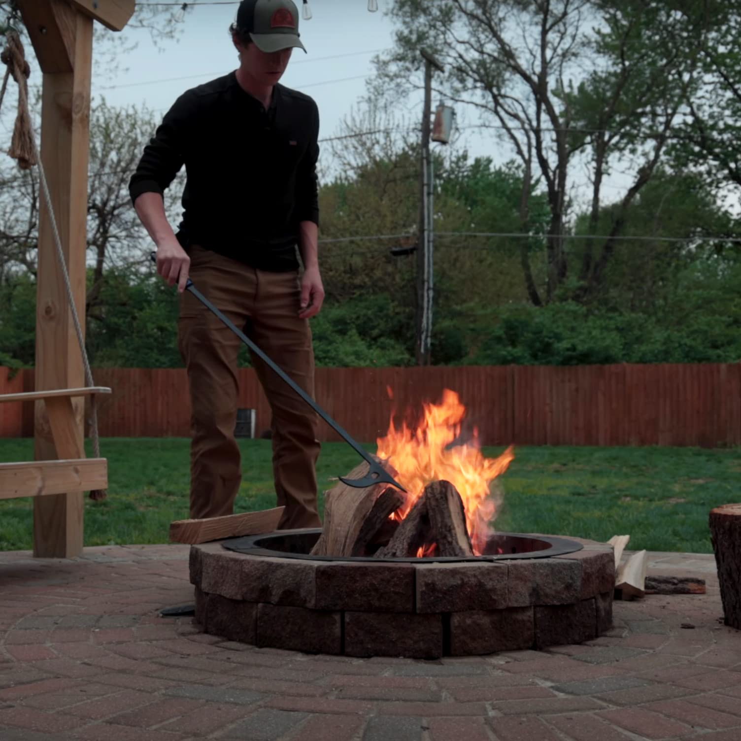 - 2-PIECE FIRE POKER SET: This fire poker set include a 40inch Fire Poker and a 40 inch Log Grabber for fire pit. Help you hook, rake, and push firewood easily when you enjoy your campfire