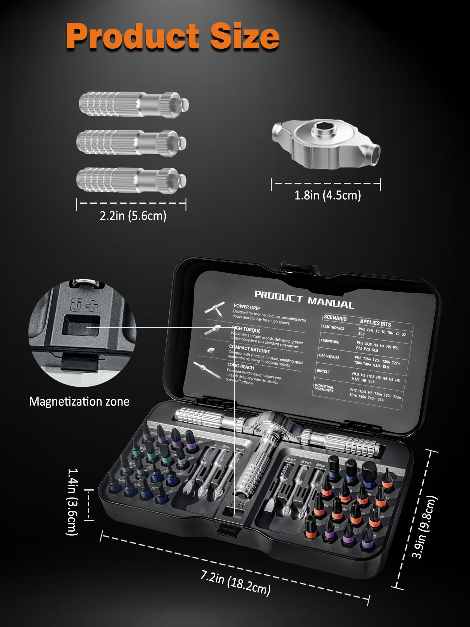 - 【Effort-Saving Magnetic Design】 The aluminium alloy T-handle can be disassembled and reassembled, which provides better leverage of torque to save time and effort. This magnetic handle also have strong magnetism, the screws are not easy to fall off