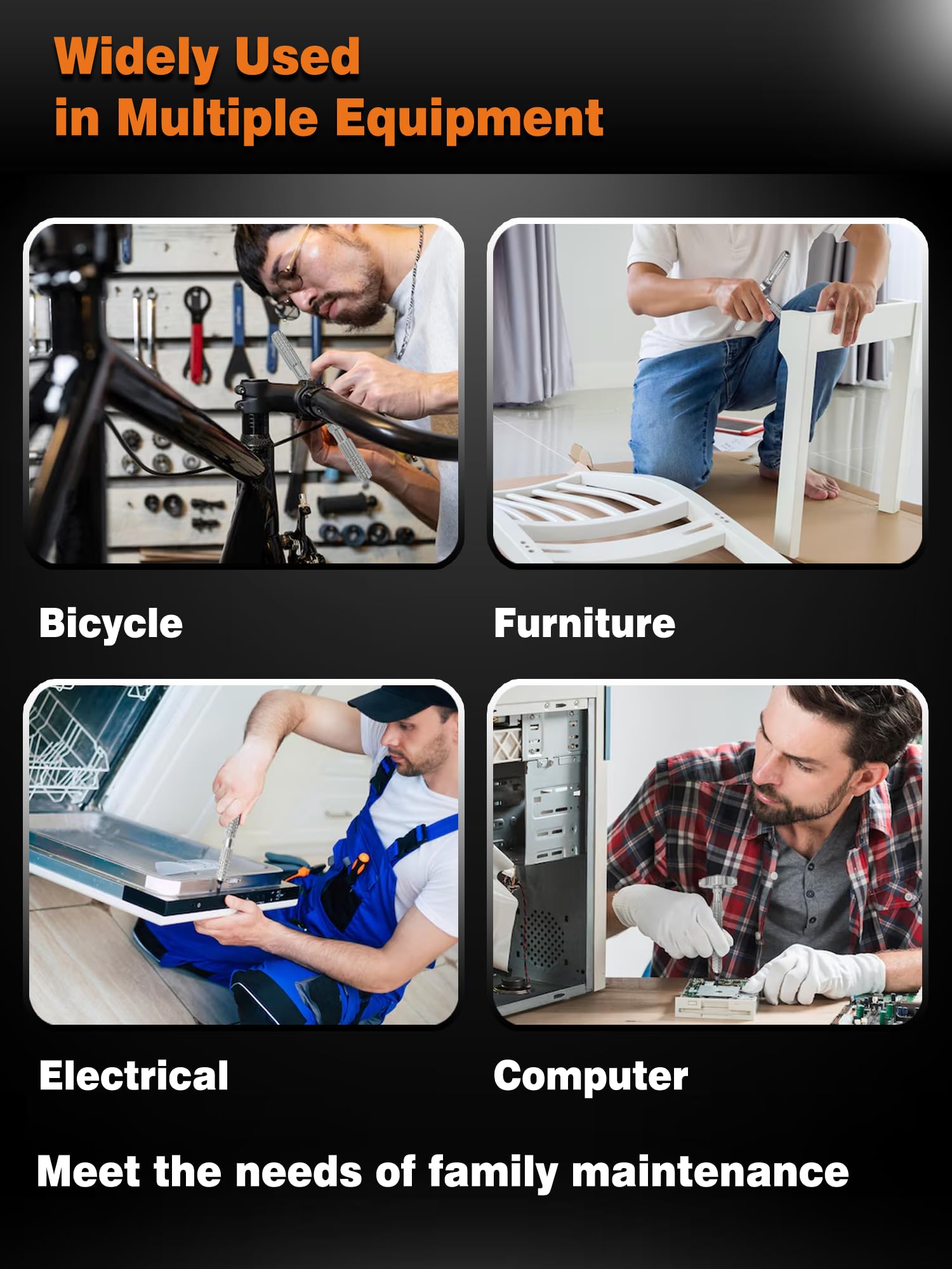- 【Portable Storage Box】 This tool kit includes a thickened storage box measuring 7 x 3.9 x 1.4 inches, complete with instructions for various scenarios and all the tools. The switch and slots of the box are firm to hold all the accessories in place and are not easily dislodged