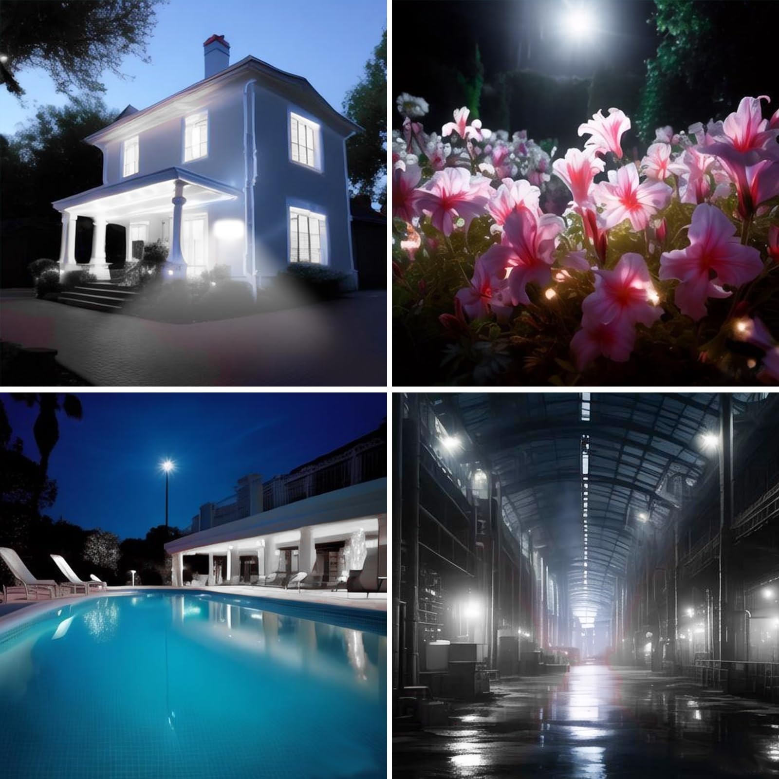 - 【Efficient Heat Dissipation】 The outdoor LED spotlights are made of high-quality thickened aluminum. The projector housing is equipped with heat sinks to promote airflow and heat dissipation. Efficient cooling structure makes this outdoor security light more durable and reliable.