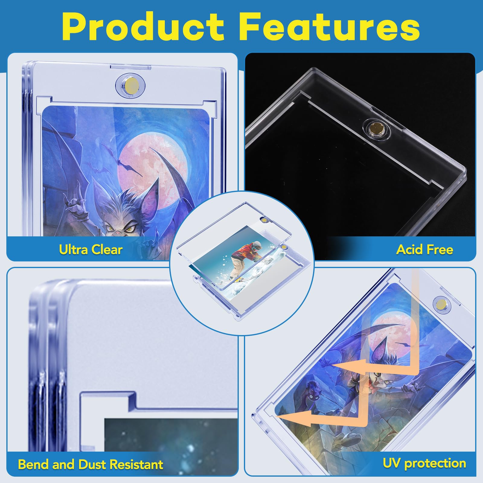- 【UV Protection & Clarity】Our one touch card holders feature a unique UV coating to reduce light exposure and prevent fading of your treasured sports cards, trading cards, and game cards. Each holder maintains perfect clarity for optimal card display