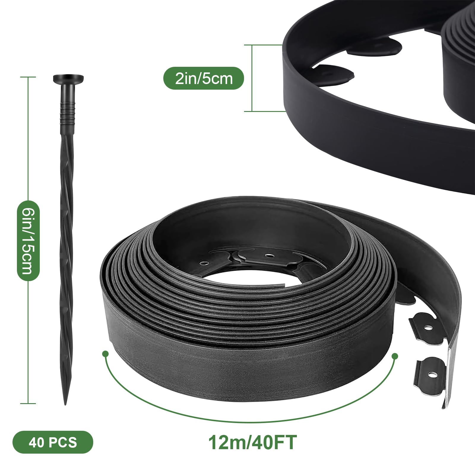 40ft Garden Edging Border with 40 Pcs Landscapes Stakes Plastic Decorative Edging Border for Landscaping, Yard, Lawn, Paver Flower Beds
