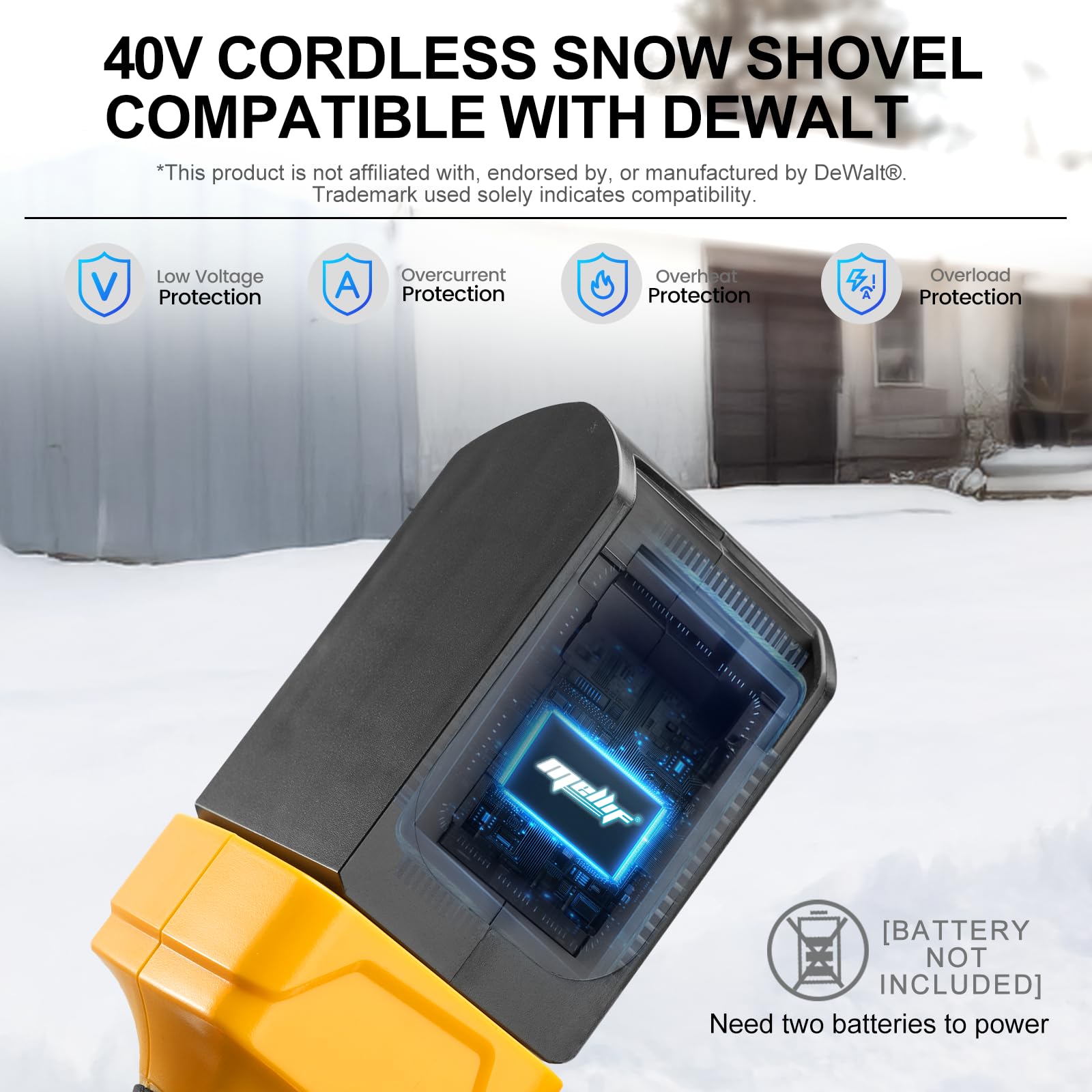 - 40V Cordless Snow Shovel: This snow shovel is compatible with Dewalt 20V batteries, and requires 2 batteries to operate simultaneously (Battery and Charger NOT Included). We focus on providing reliable tools