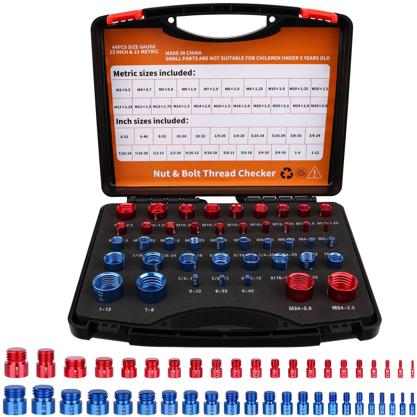 - 【Two Year- 100% Guarantee 】Buy with confidence, if you're not satisfied with this item at anytime within two years of purchase, please feel free to contact us at any time, we have a professional customer service team to our every customers at any time. Package: 44pcs Nut and Bolt Thread Checker