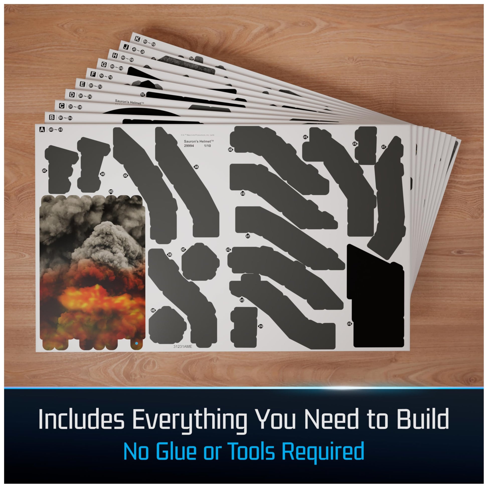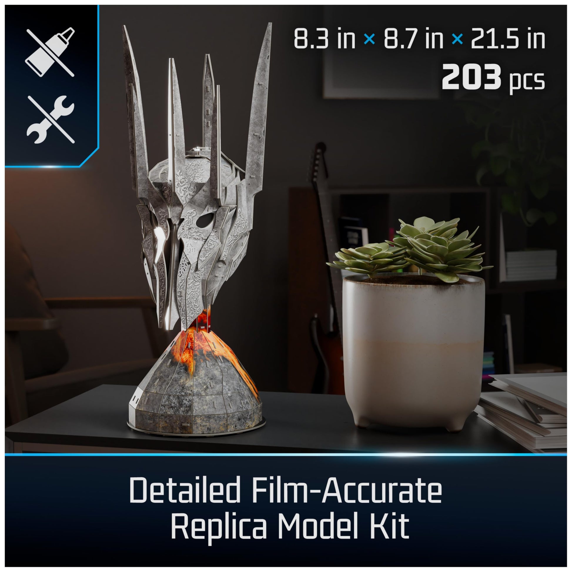 - Detailed Replica: Go on an epic building journey with a movie-accurate shelf decor Lord of the Rings piece. This 4D Build Sauron Helmet puzzle model kit has movie-quality intricate detail & a stand.