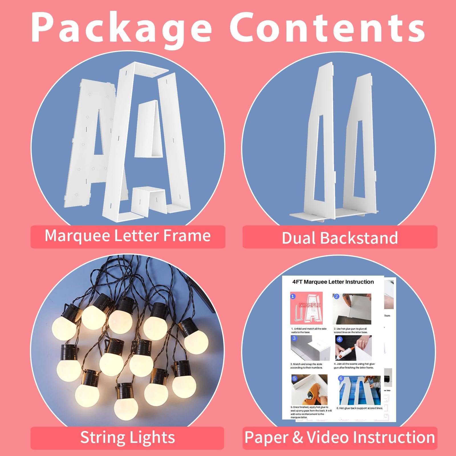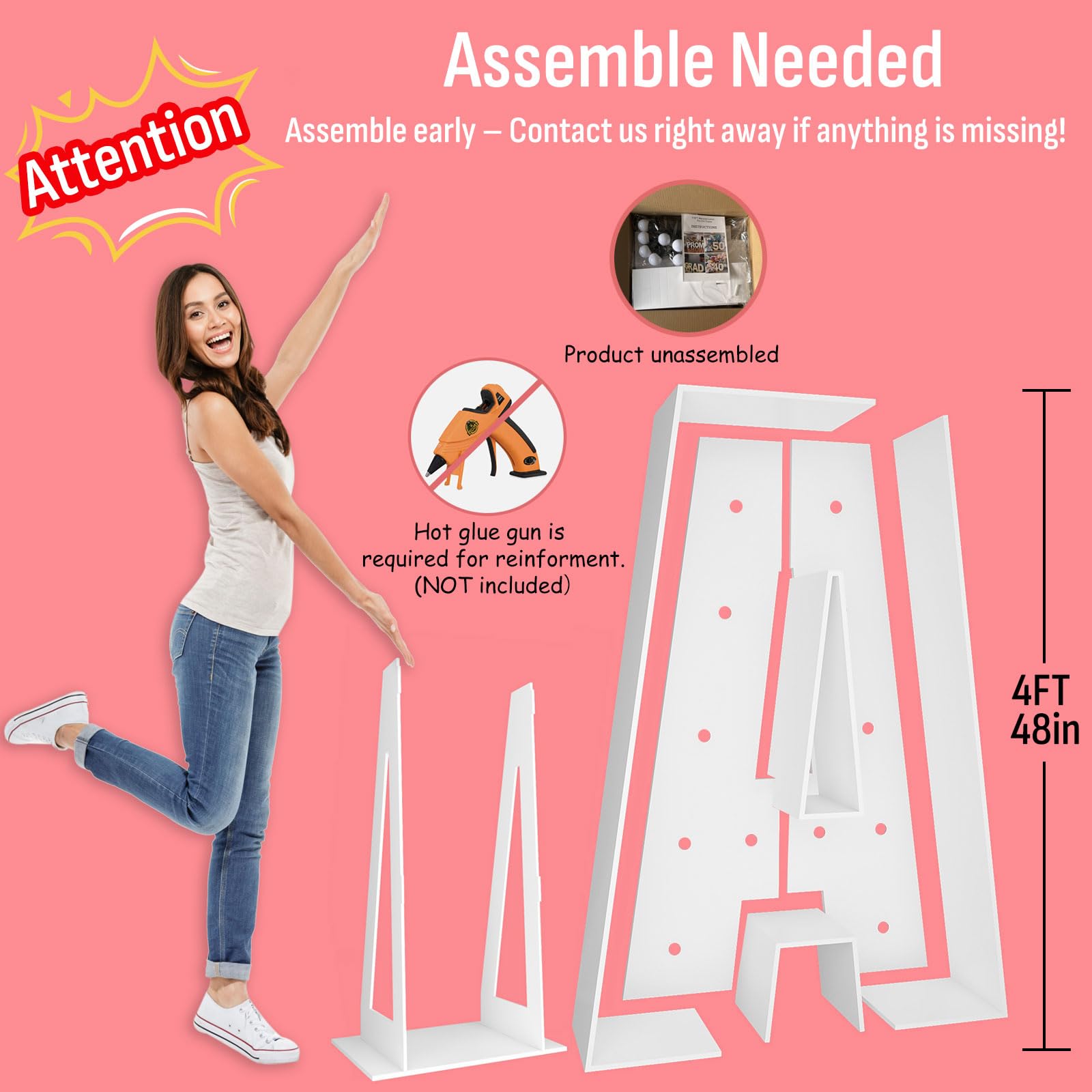 - UNLEASH YOUR CREATIVITY: Whether it's a wedding, proposal, bridal shower, or anniversary, our marquee letters 4 feet tall are your canvas. After setting up the frame, simply screw in the included string lights through the precut holes to create the perfect marquee letter sign centerpiece.