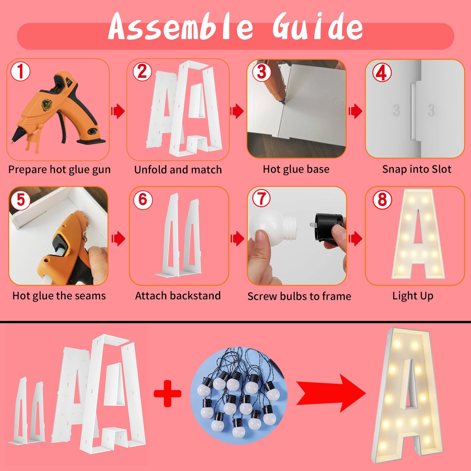 - HASSLE-FREE ASSEMBLY: Joybox Design’s large light up letters' user-friendly slot-in design features pre-cut slots on the side walls, each labeled with numbers, ensuring a seamless and error-free setup. No more worries about putting the 4ft marquee light up letters together incorrectly.