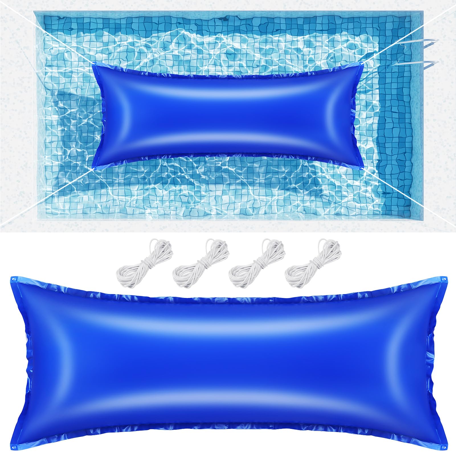 - PRODUCT INCLUDES: You will receive a 8x12 feet (uninflated) inflatable pool cover balloon and four 157.5 inch long tether ropes. The larger size provides better support for the pool cover and is suitable for various large underground or above-ground pools