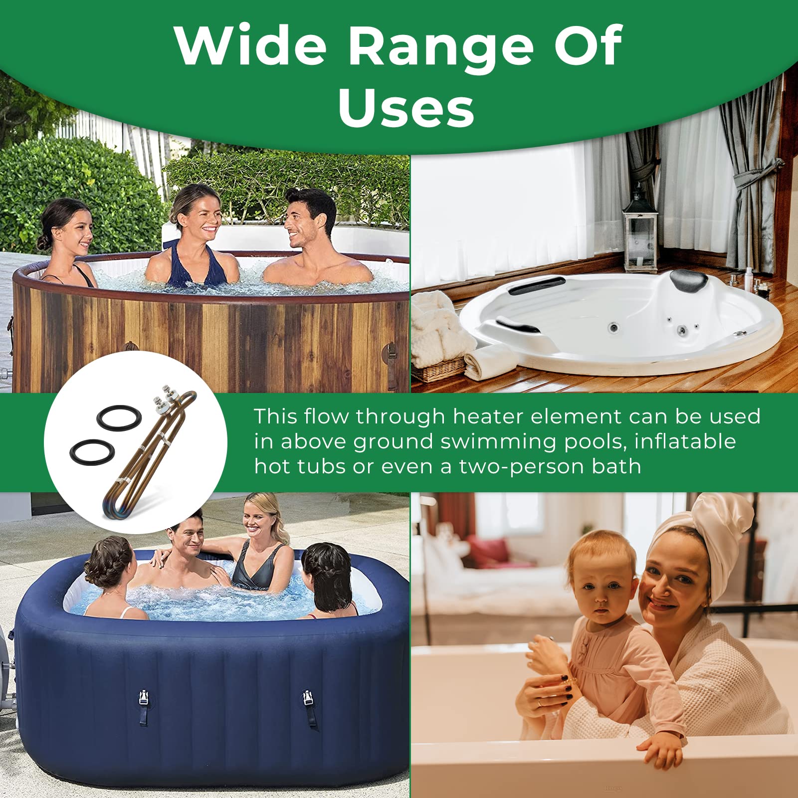 - UNIVERSAL DESIGN - For hot tub heater element can be used with a wide range of spa electric heater or swimming pool, etc. Package comes with mounting hardware (2x terminal nuts 2x o-rings 2x jam nuts) so that we can install it safely and easily.