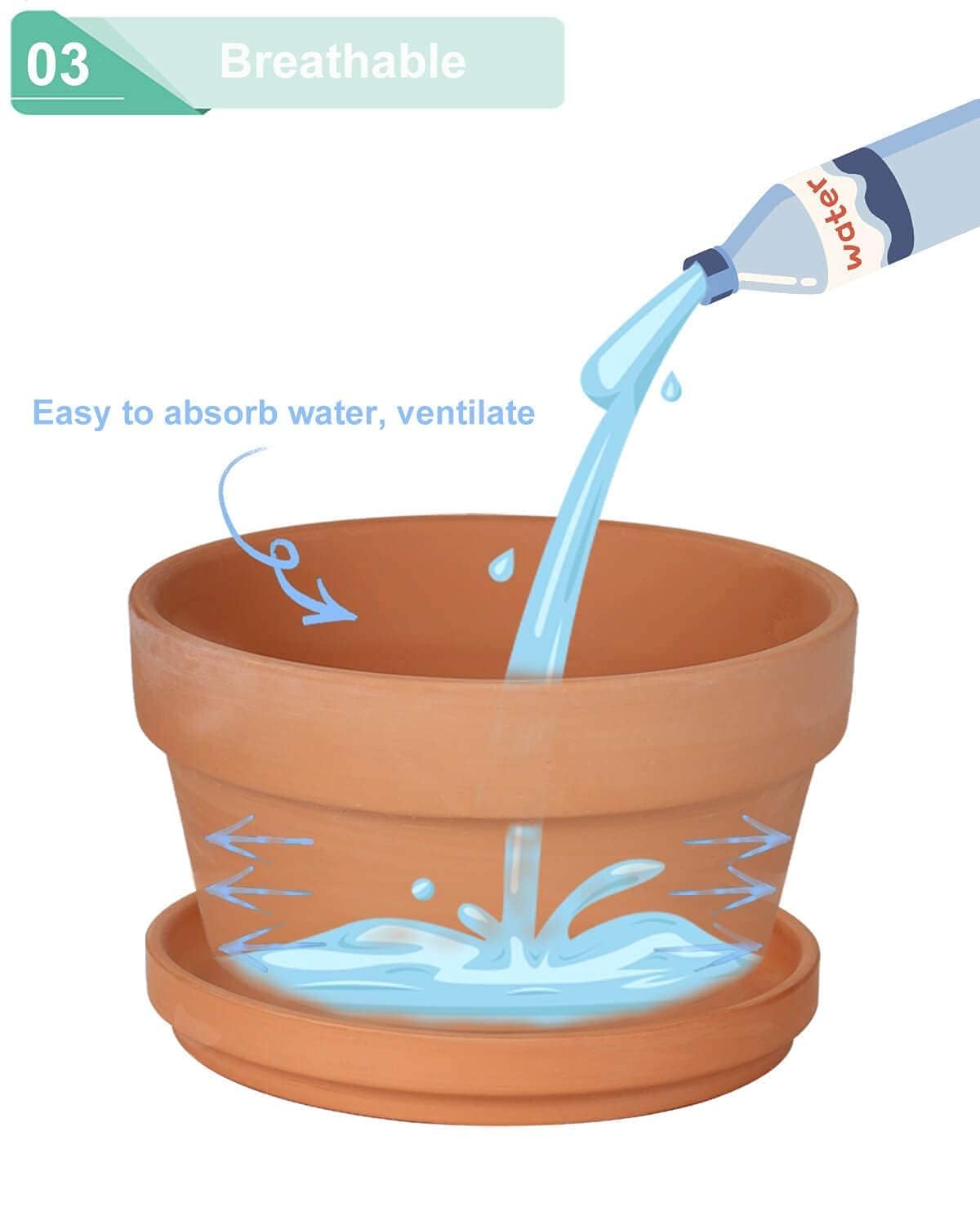 - Quality Materials: Terra cotta pots Making from high-quality clay through high-temperature baking, the walls of the pots draw the water out of the soil to help the soil dry quicker.