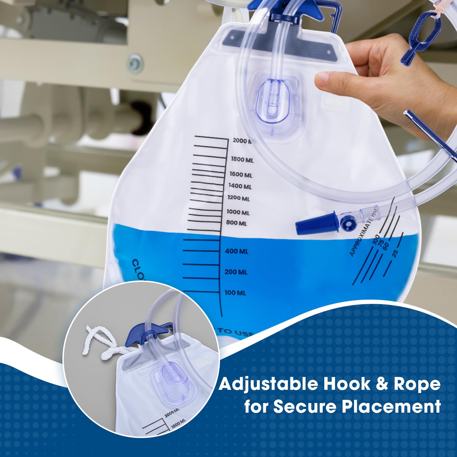 - 2000mL/68oz Capacity: Urinary drainage bag has a capacity of 2000ml, and there is no need to change the urine bag frequently, saving you money and cleaning time.