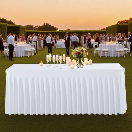 5 Pack White Rectangle Spandex Tablecloths for 60in Tables, 120Inch Stretchy Fitted 5FT Rectangle Table Clothes,Wrinkle Free Table Cover with Skirt for Wedding Party Dining Banquet