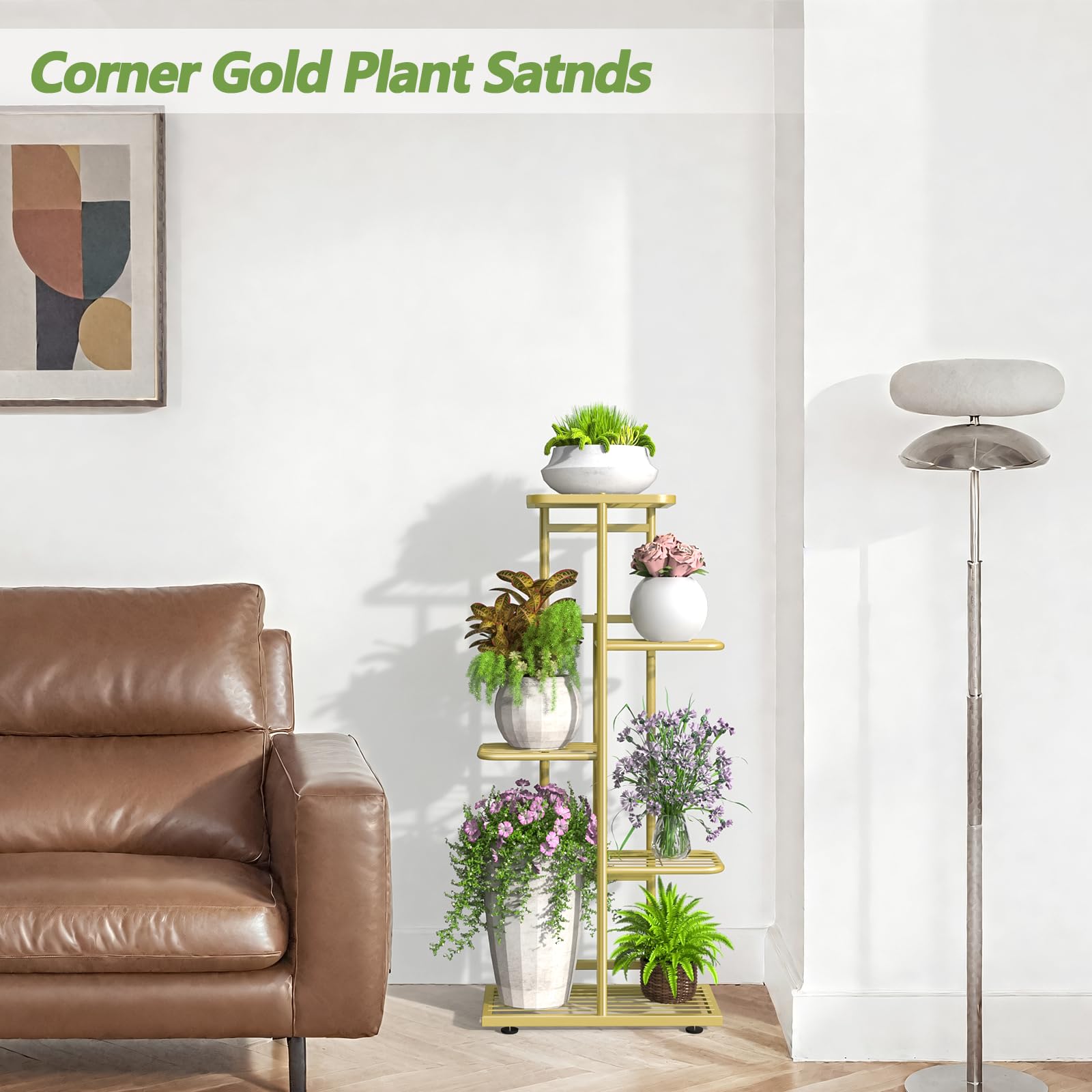 - 【Space-Saving Vertical Design for 6 Plants】 Designed for plant lovers, this corner gold plant stands indoor accommodates 6 pots of varying heights. The Designed with tiered spacing to maximize sunlight for every plant and maximizes space in balconies, gardens, or small apartments without sacrificing style.
