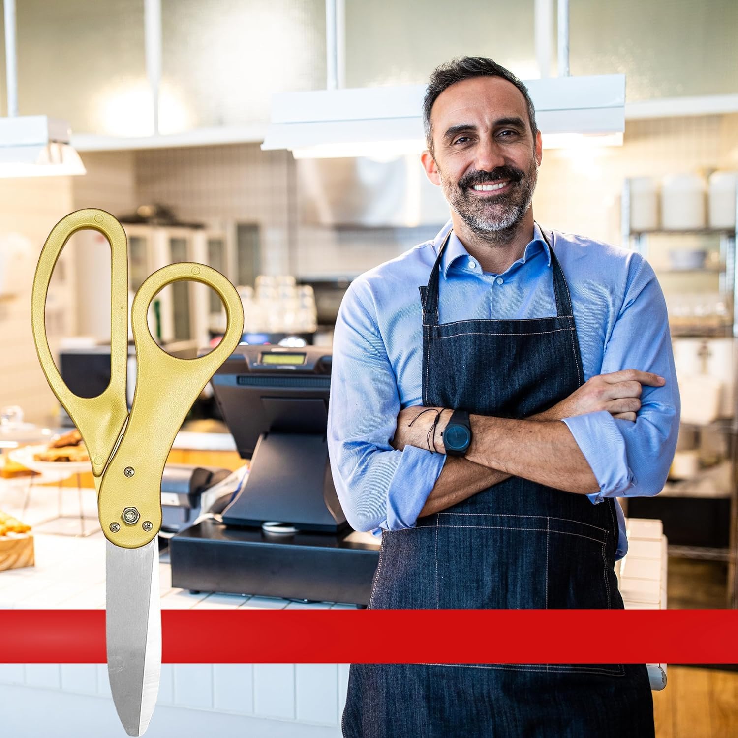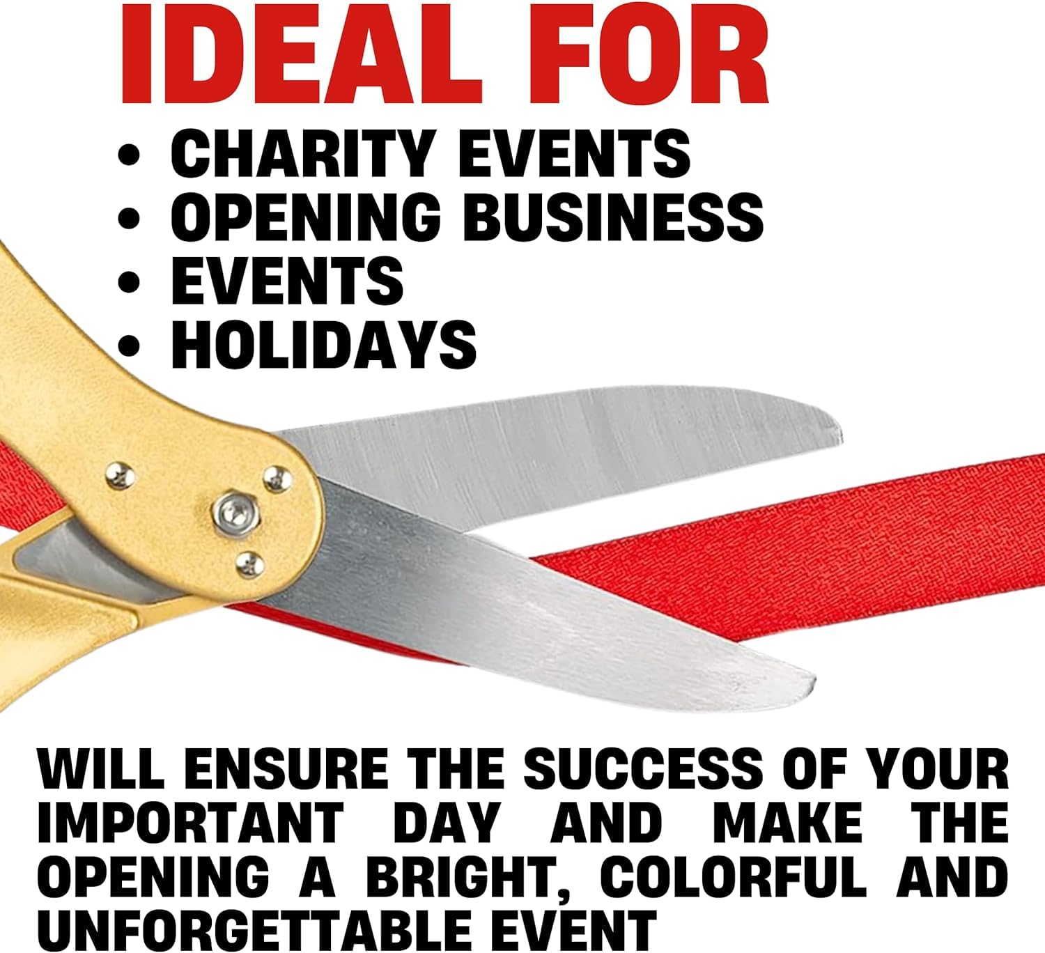- You will get a giant scissors for the ribbon cutting ceremony in elegant gold color. Large ribbon cutting scissors size is 50.8 cm closed. Our big gold scissors is exactly what you need for your ribbon cutting ceremony. Use these grand opening decorations to create your own great event