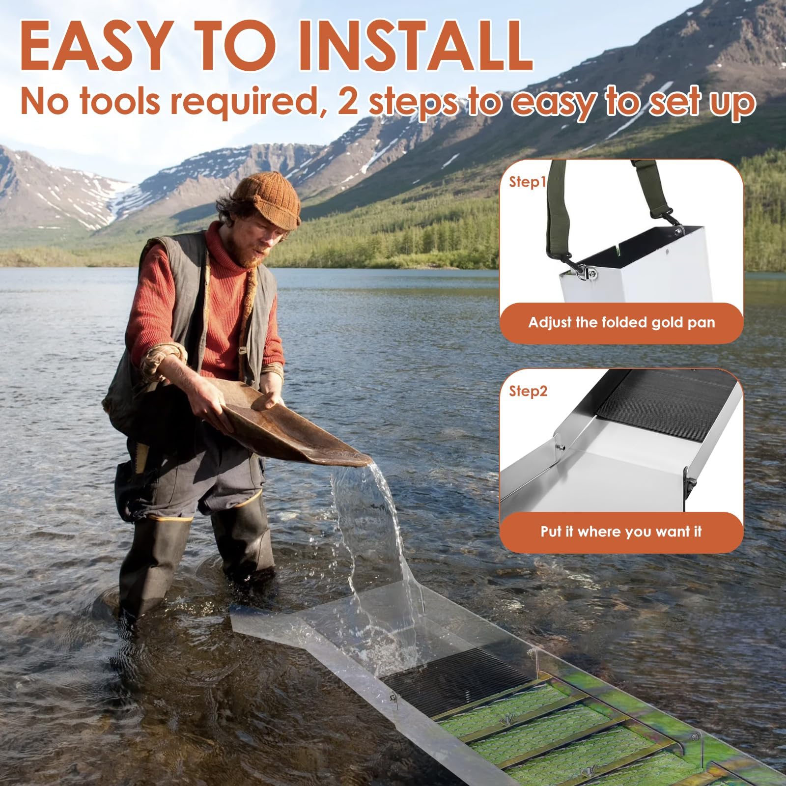 - Lightweight and Portable: The foldable gold sluice box measures 50" L x 9" W x 2.6" H. The sluice box includes a storage bag and shoulder straps, the storage bag making it easy to transport, and the shoulder straps preventing accidental sliding or tilting. Our gold panning kit for adults is safe and easy to use and allows you to carry it effortlessly wherever you go