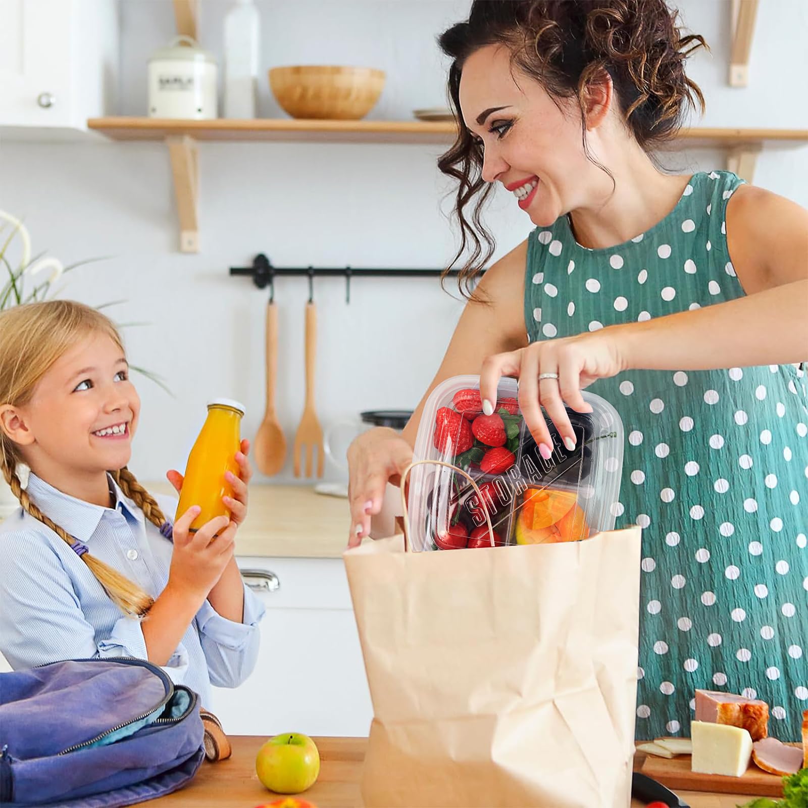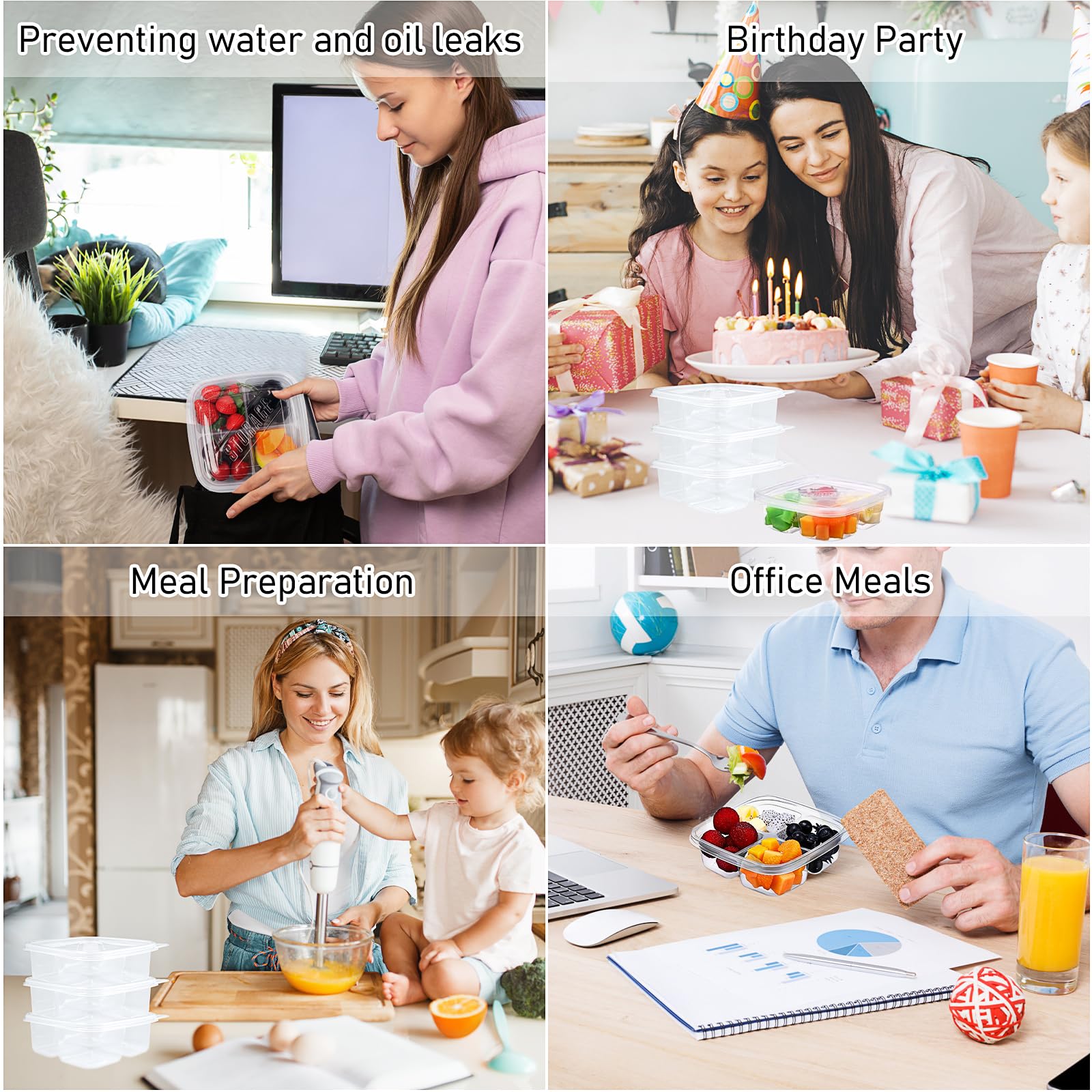 - Value Pack for Ultimate Convenience: This set includes 50 pack of divided containers with lids, each measuring 6.3'' L x 6.3'' W x 2.4'' H. The generous quantity is perfect for meal prepping, lunches, and snack packs for the whole family. Ideal for home kitchen storage or on-the-go use, these grab and go snacks containers are stackable to store taking up less spaces.