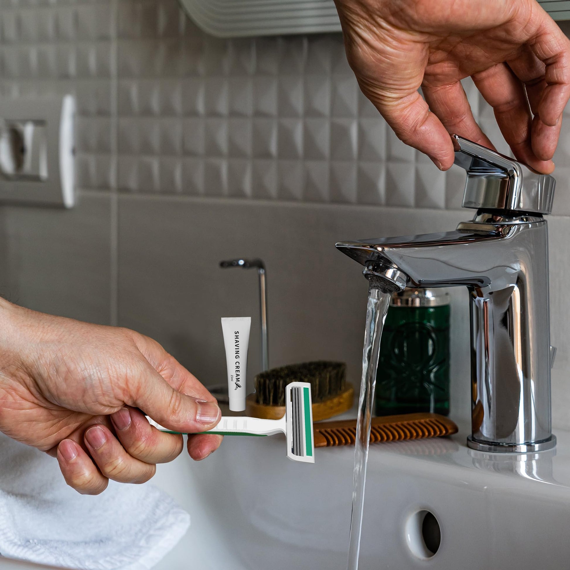 - EASY TO TAKE : Compact and portable disposable shaving kit is perfect for travel or on-the-go use or for guests. It can be used for hotels ,homeless care , shelters, charity events, survivor kits, Homeless Donations,etc.