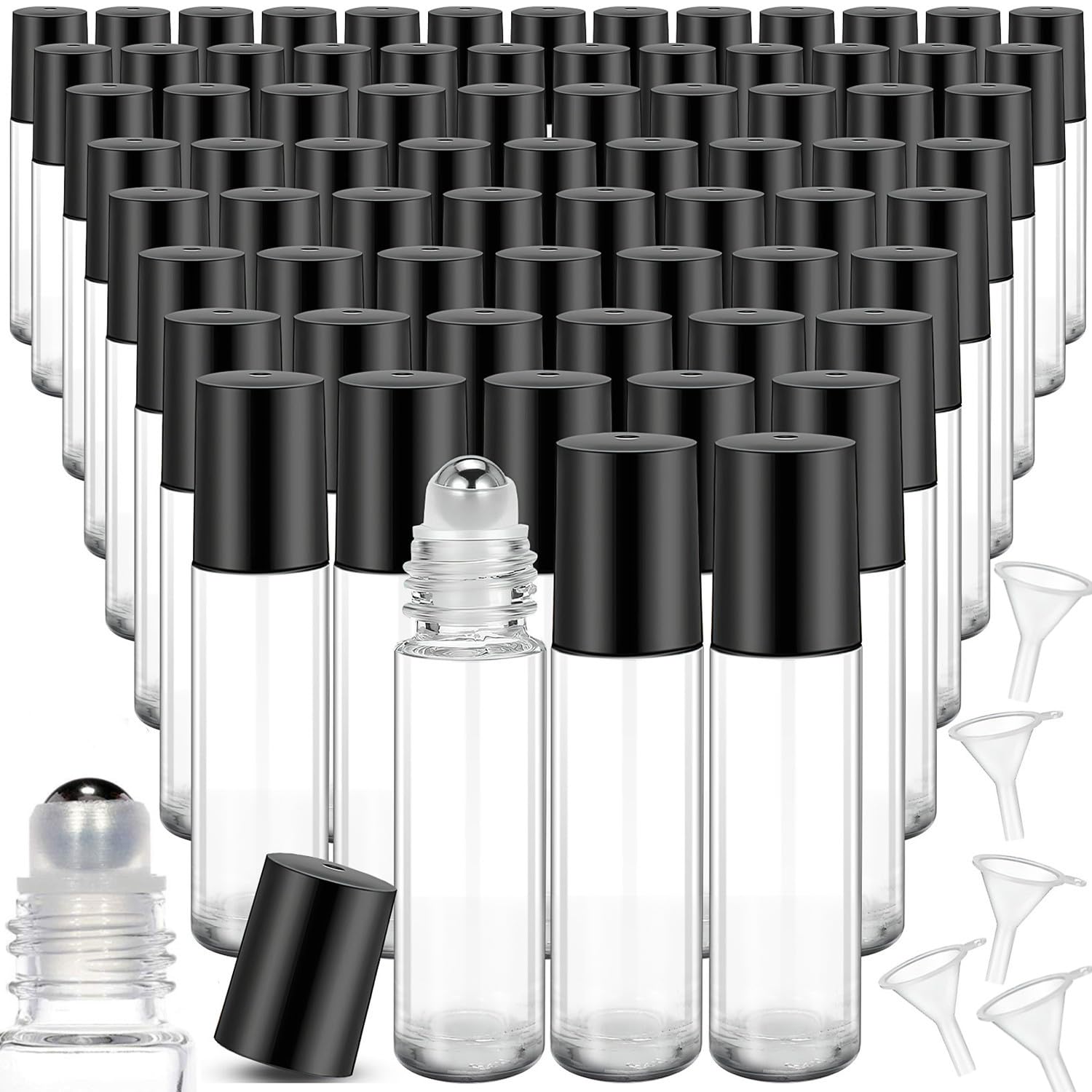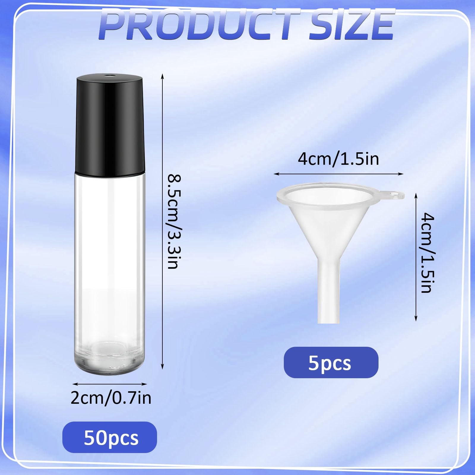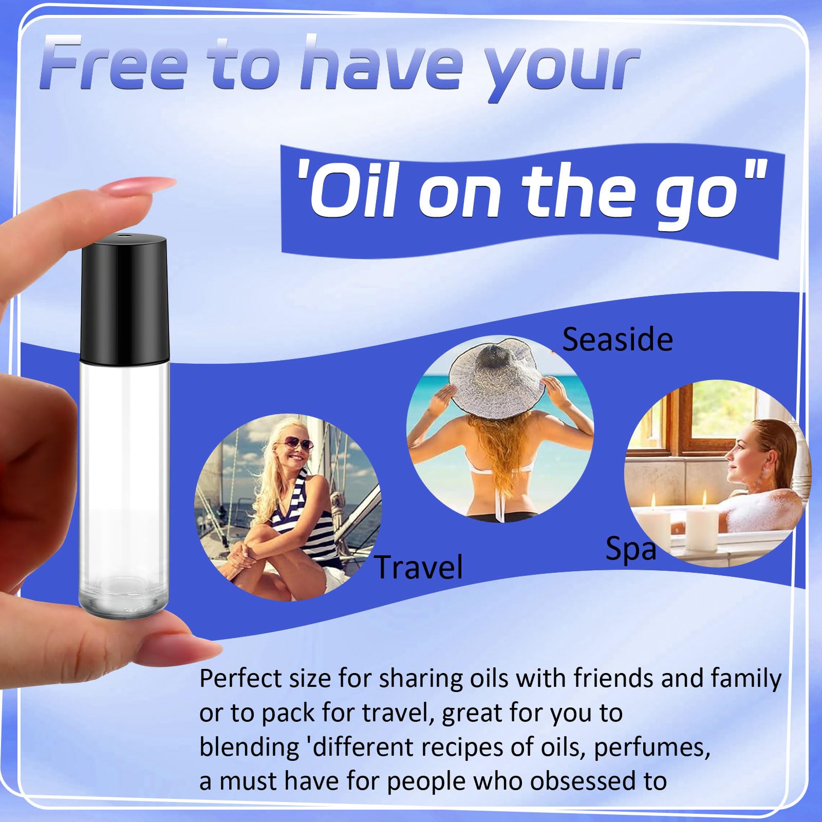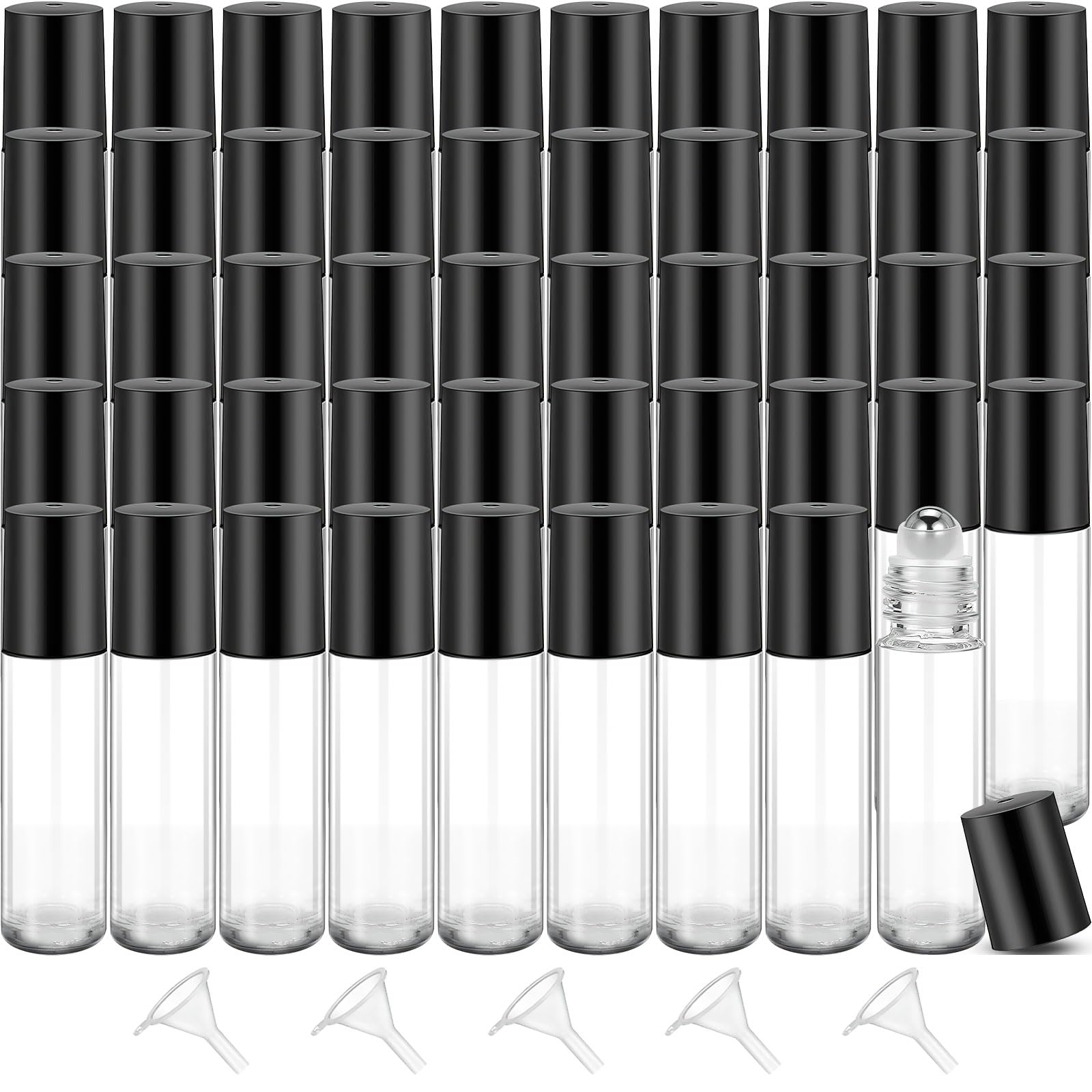 - 50 Pcs Glass Roller Bottles: Receive a set of 50 clear empty glass roller bottles for oils, each with a capacity of 10ml, perfect for storing and applying essential oils, perfumes, and other cosmetic sample liquids.