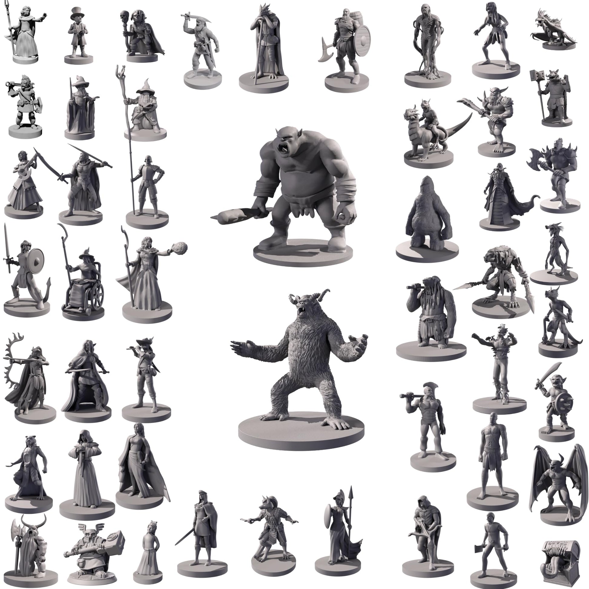 50 Unique Miniatures Fantasy Tabletop RPG Figures for Dungeons and Dragons, Pathfinder Roleplaying Games. Bulk unpainted, Great for D&D