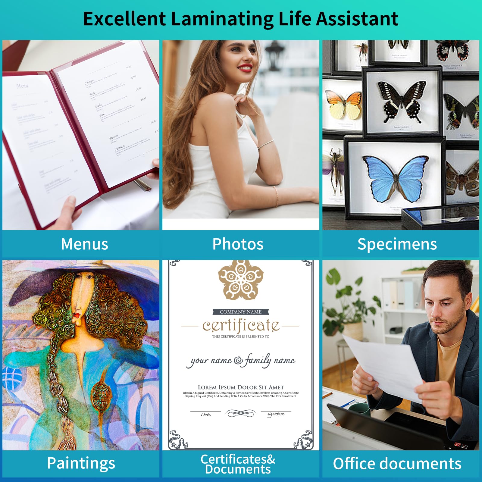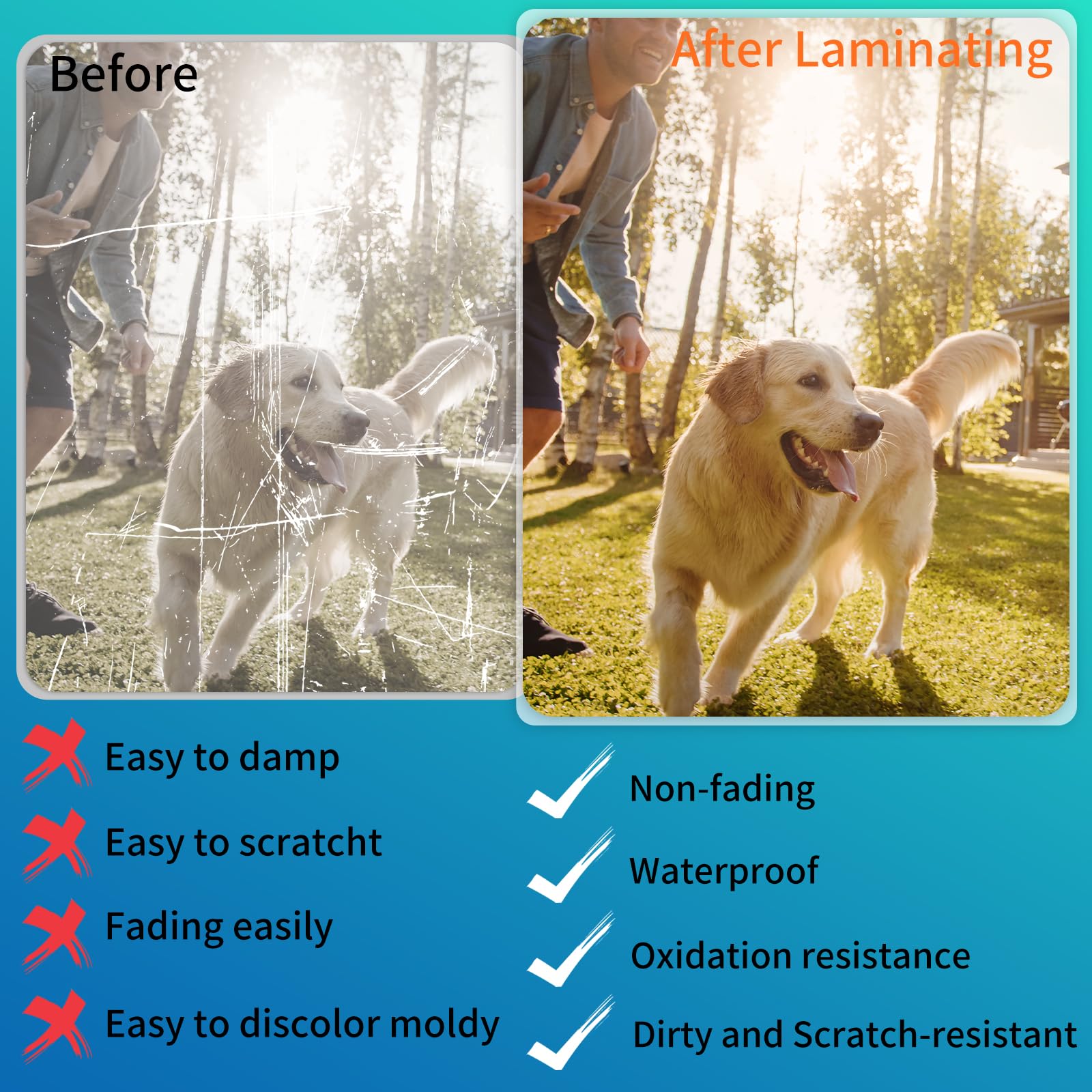 - 【HIGH QUALITY】These laminating sheets will not be wrinkled, rippled , bended or jammed. - LabelMore lamination pouches is resistant to water, moisture, dew, UV can withstand changing weather conditions. - Provide lasting protection for your pictures, documents, or photos.