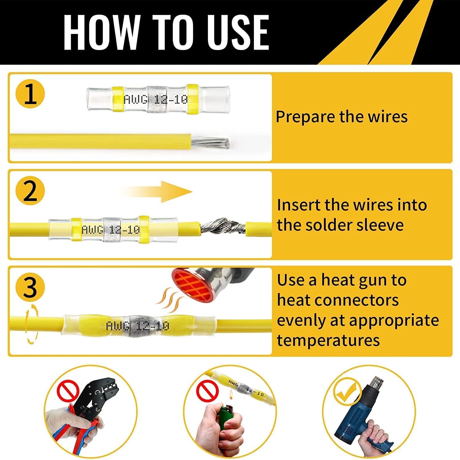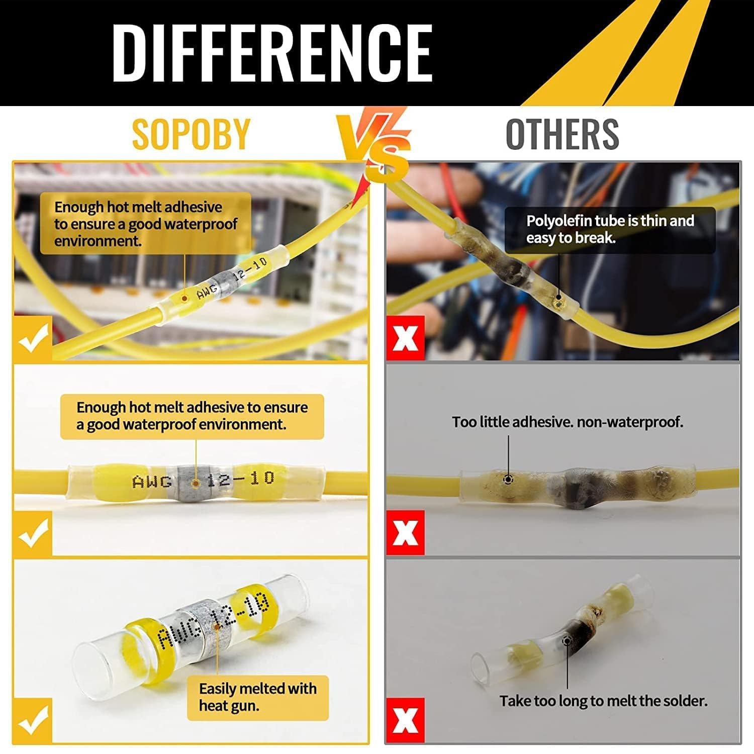 - BETTER WATERPROOF SOLUTIONS: Double wall design, Hot Melt Adhesive inside ensures wires strongly connected and prevent wires slipping from the terminal; Polyolefin outside tubing provides insulation and improves pullout strength