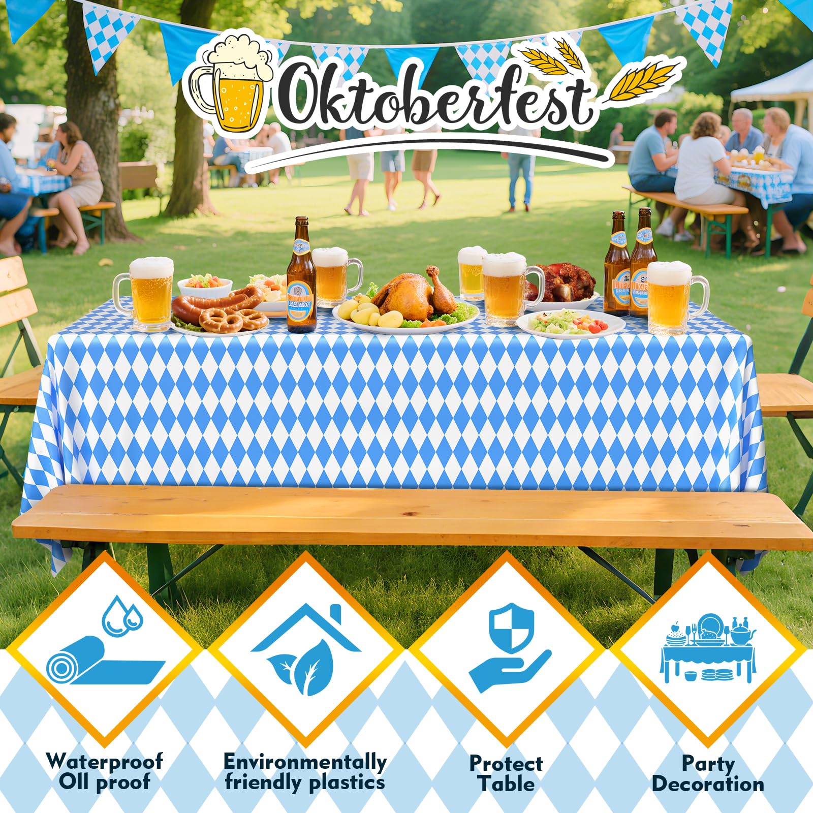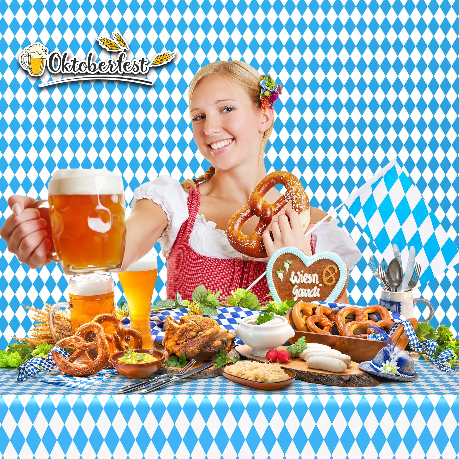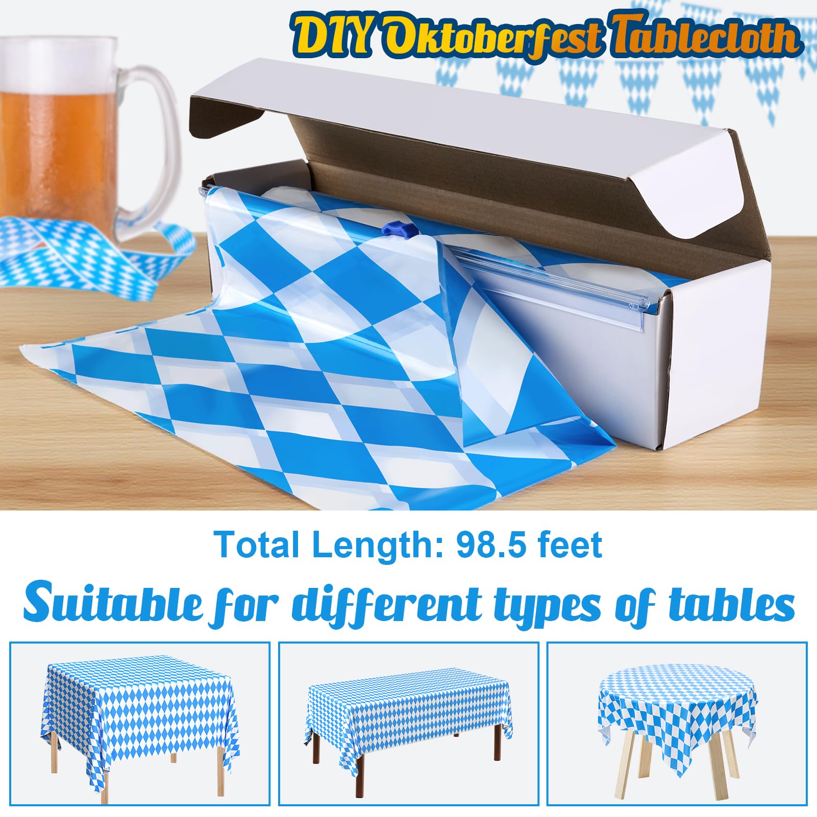 - Festive & Versatile Decoration: Featuring the classic blue and white diamond pattern inspired by Bavarian tradition, it’s ideal for Oktoberfest parties, German-themed events, weddings, or craft tables. Use it as a table cover, backdrop, photo booth banner, or protective surface liner