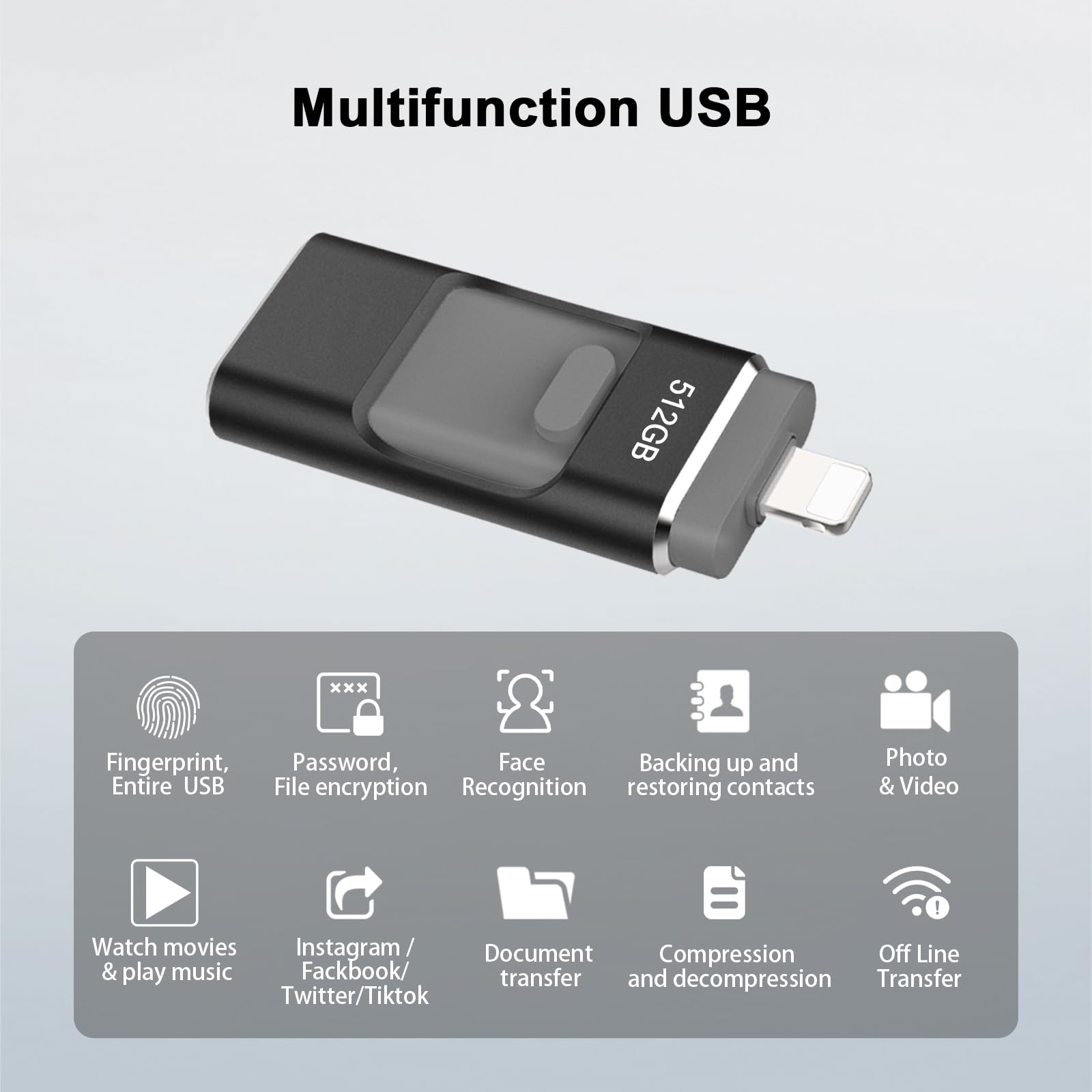 - Compatibility :The flash drives is compatible iphone/OTG Android phones/computers and other devices with USB ports. You can also share documents/photos directly from the photo storage to social media such as: Facebook, Twitter, etc. Use the photo stick for iPhone to easily share data with family, friends and colleagues, making entertainment and work more interesting