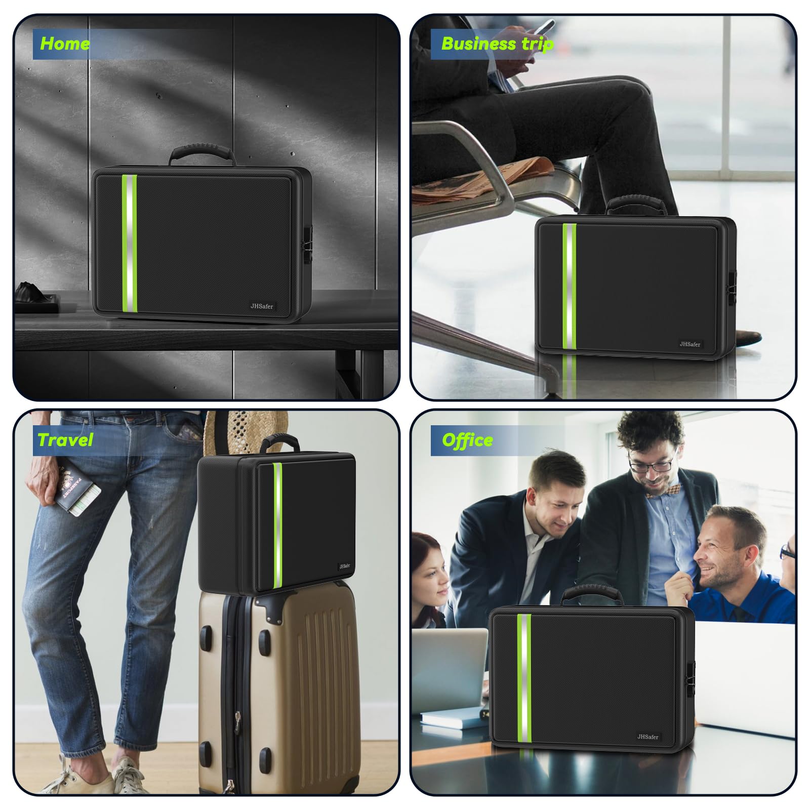 - Suitable for Home, Travel, Business Trip: Our fire proof safe boxes for home are perfect for keeping inside a safe as a second layer of protection. We made many designs for traveling and business trips. The ergonomic handles are designed to take the strain off the wrist. The strap on the back of the document safe is designed to attach to luggage trolleys for added portability. The main interior pocket is designed with a fixed strap to enhance the stability of the contents
