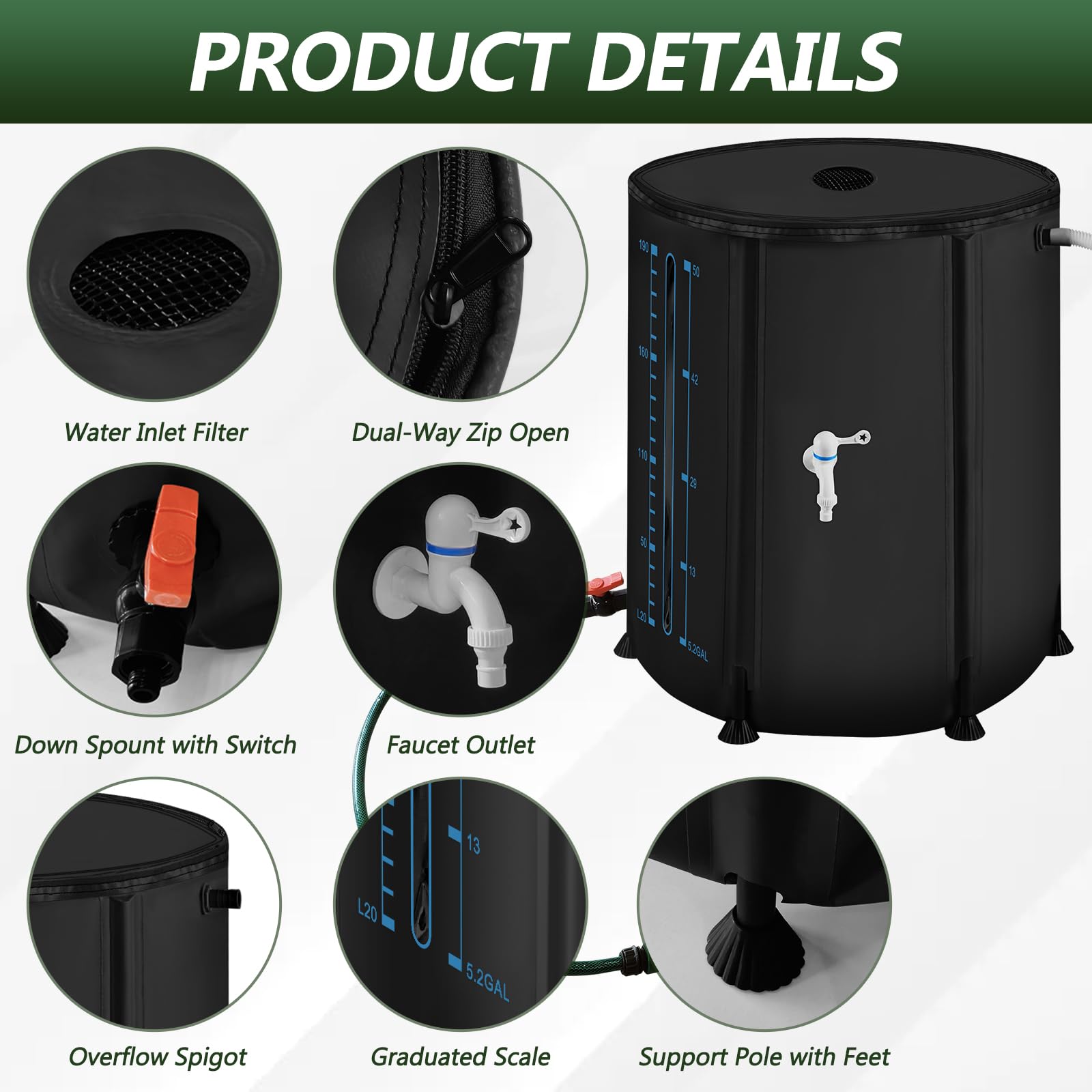 - Collapsible Rain barrel and Easy Installation: Upgrade your rainwater collection with our innovative portable rain collection barrel. Unlike bulky traditional hardwood buckets, our folding rainwater collection barrel are easy to carry and store. With only few steps, you can quickly install this collapsible rain barrel