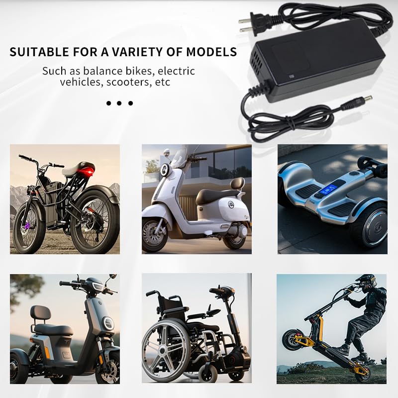 - 54.6V Charger: 48v Lithium Battery Charger Outputs up to 54.6V 2A, inputs 100-240VAC, charges faster, saves your time