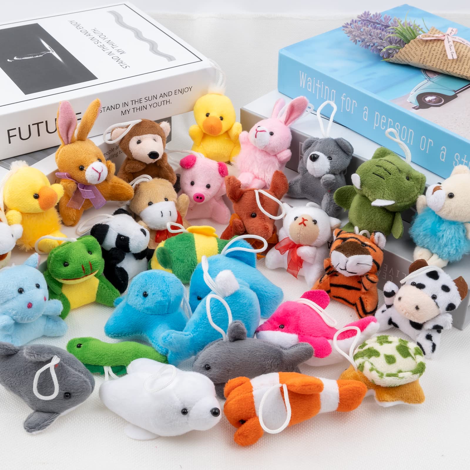 - 56 Design Animals Plush with 2 Different Styles: 32 Pack Mini Plush Animals such as jungle, farm, pets, forest, and 24 Packs of Mini Ocean Stuffed Toys such as dolphins, octopus, seals, sharks, sea lions ect