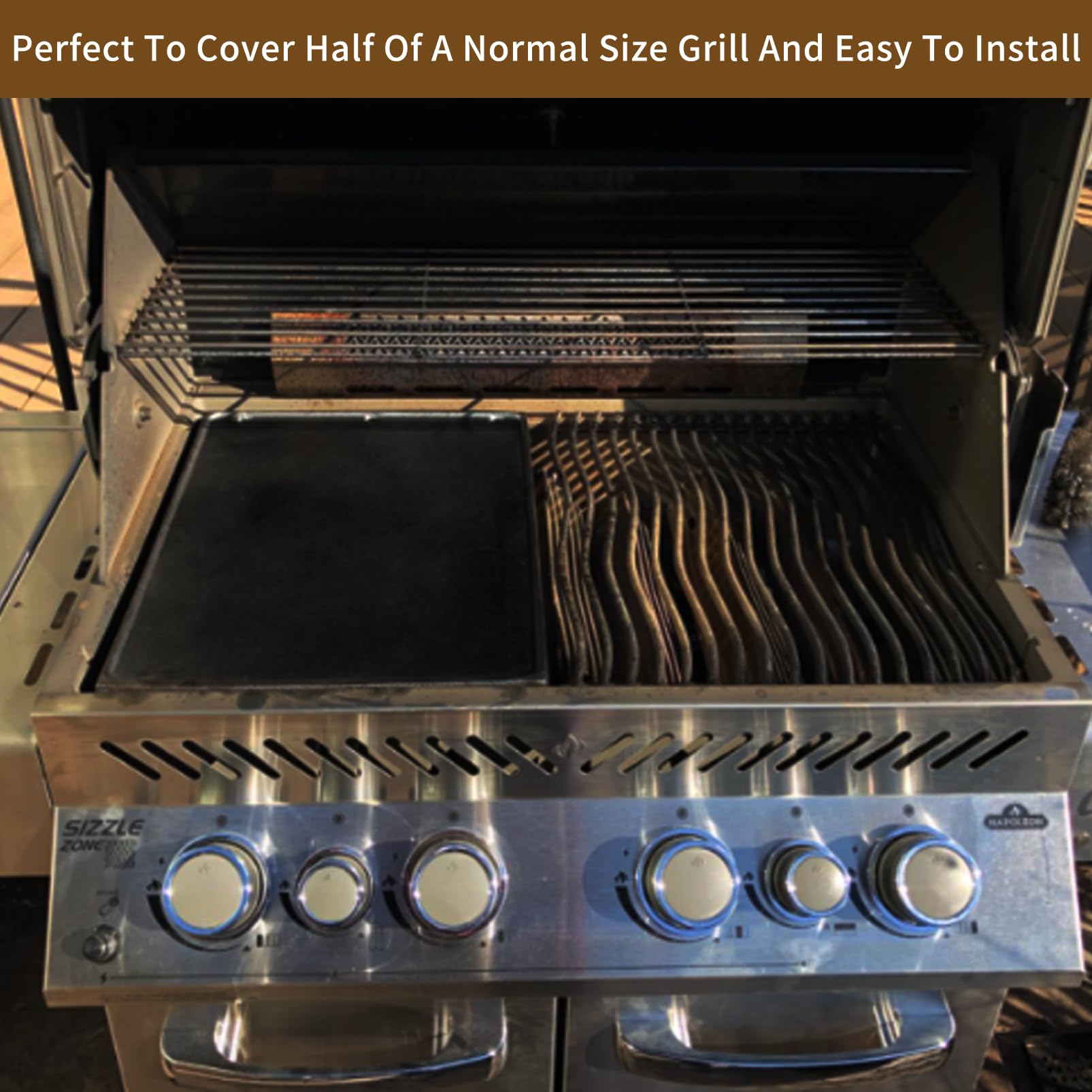 - DESIGNED TO REPLACE ONE GRATE IN NAPOLEON GRILL: Use this Napoleon cast iron griddle plancha to replace one napoleon bbq grate, cover half of a normal size grill, offering a different grilling experience, you can use both griddle and grate to cook your favourite food at the same time