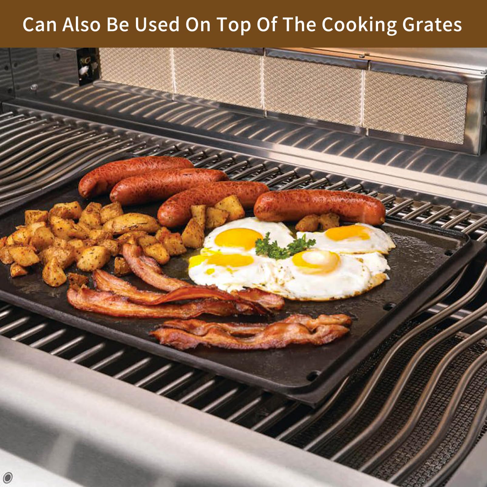 - RAPIDLY HEATED AND EASY TO COOK: It's easy to heat it to 700F and once there, drop a pat of butter on the griddle and drop your steak right on top of it and get a sear as good as the best steakhouse. This Napoleon bbq accessories is also great for cooking vegetables and other items that can easily fall through the regular grill grates. The convenient little holes in the top allow grease to drain away from your food for the crispiest bacon, and succulent sausages