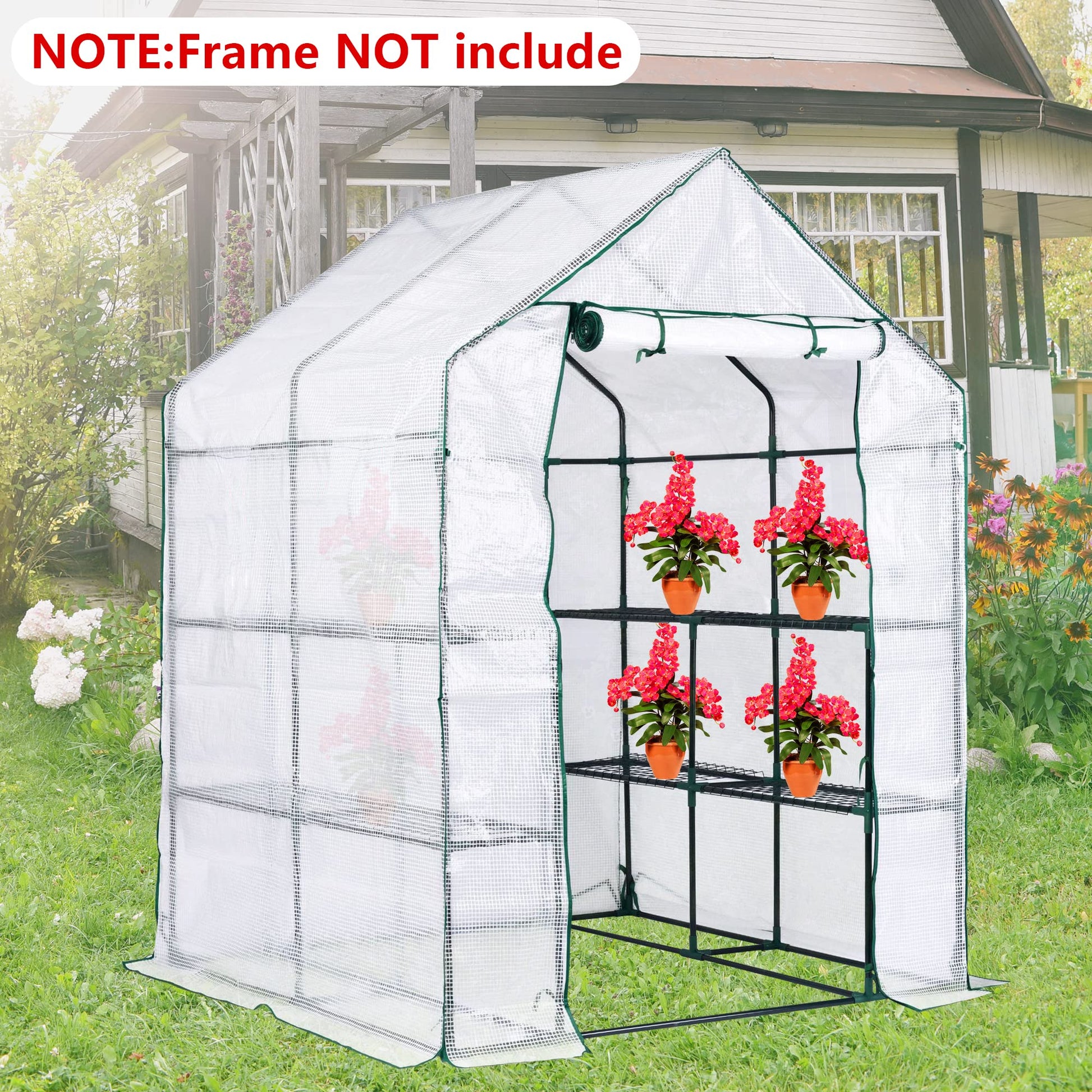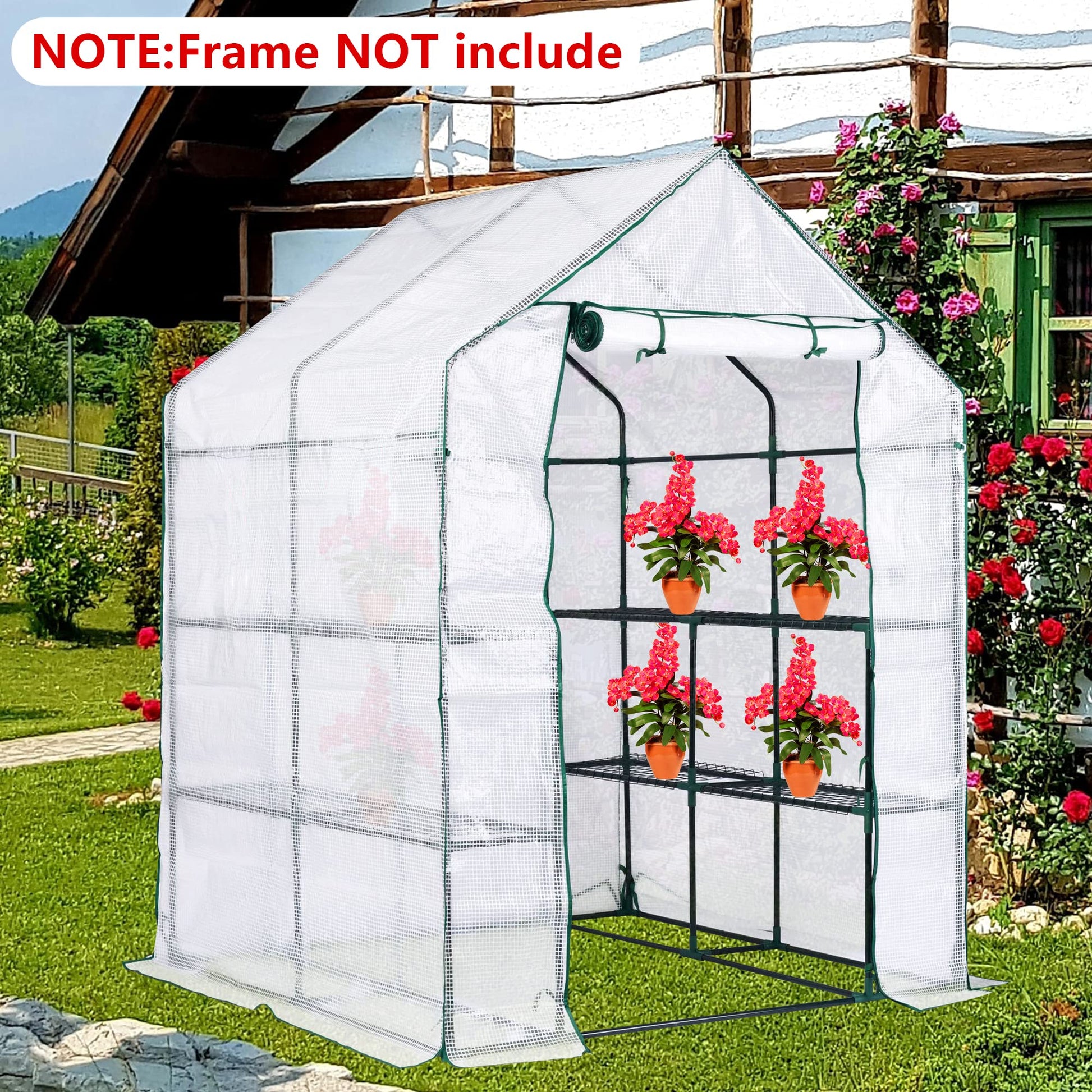 56x56x76in Walk-in Greenhouse Replacement Cover with Roll-Up Zipper Door - PE Greenhouse Cover for Outdoor Plant Gardening Plants Cold Frost Protection Wind Rain Proof(Frame Not Include) (A-Style)