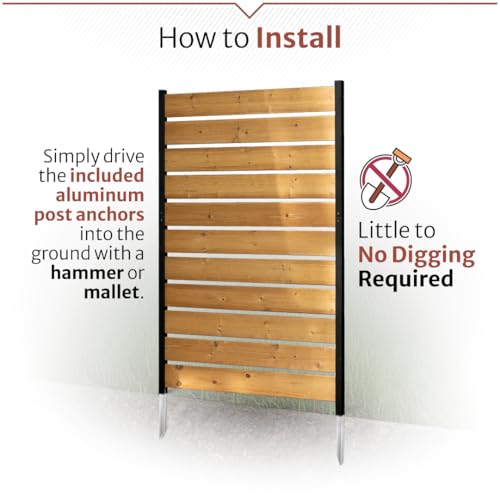 - EASY TO INSTALL: Our wood privacy fence panel assembles in approximately 90 mins and installation is simple and easy. Using a mallet and the included ground stakes, tap your posts into the ground, securing your screen.