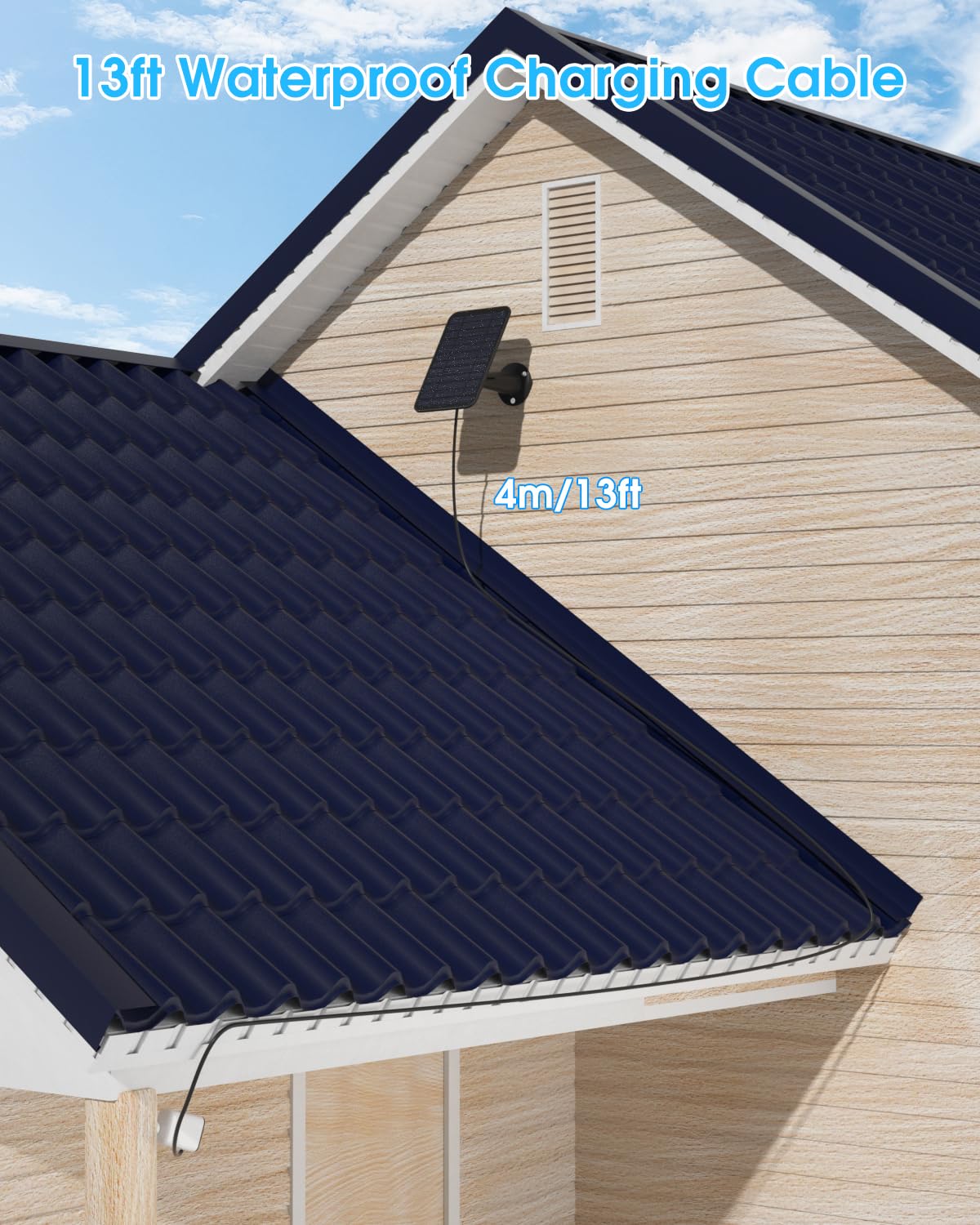 - 【360°Adjustable Bracket & Easy to Install】Our blink camera solar panel chargers are equipped with 360° rotation adjustable secure wall mount bracket & extra-long 13.1ft/4m charging cable, which allows you to easily position your solar panel to capture the maximum sunlight exposure in different seasons.