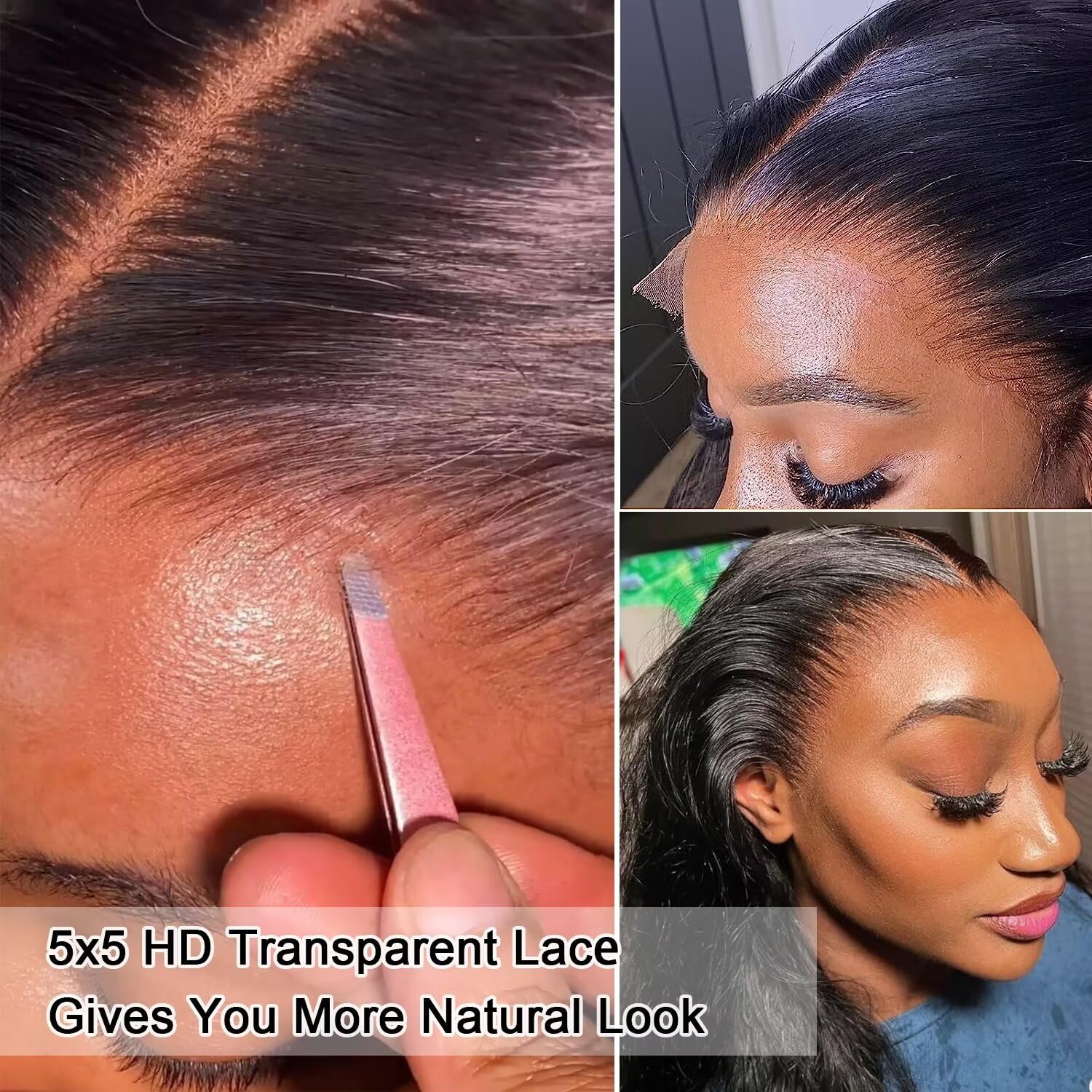- 【5*5" Lace Closure:5*5" HD Transparent Lace Closure Human Hair Body Wave 150% Density,True to Length, Full and Thick; 10-22 inches available, Natural Black Color; Pre Plucked Natural Hairline with Baby Hair