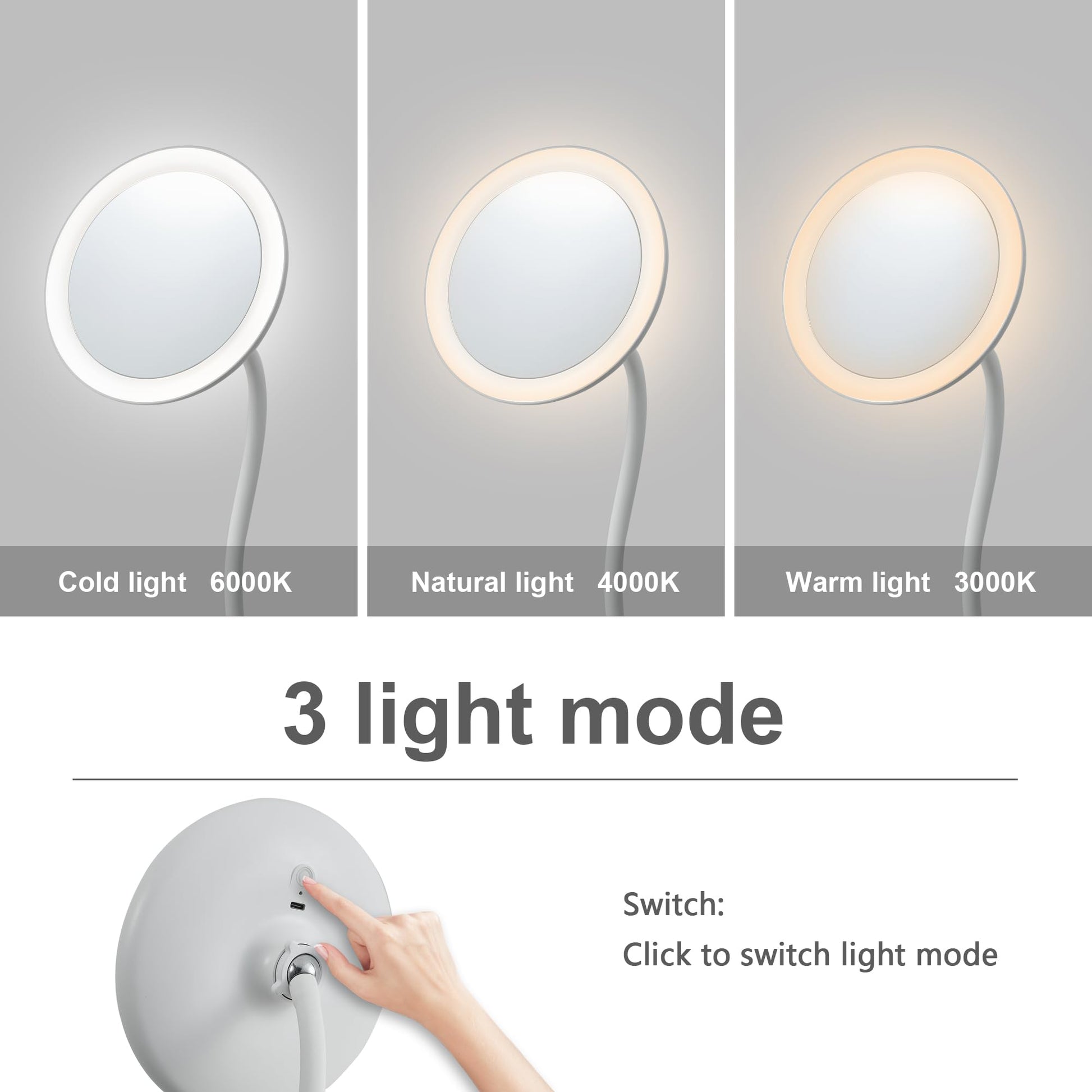 - ✨Clip-on makeup mirror with light: Using high-quality LED lamp beads, the brightness is greater than 800lm. Provides soft anti-glare light and 95% true color reproduction, with color temperature 3000K/4000K/6000K freely switchable and infinitely adjustable brightness.
