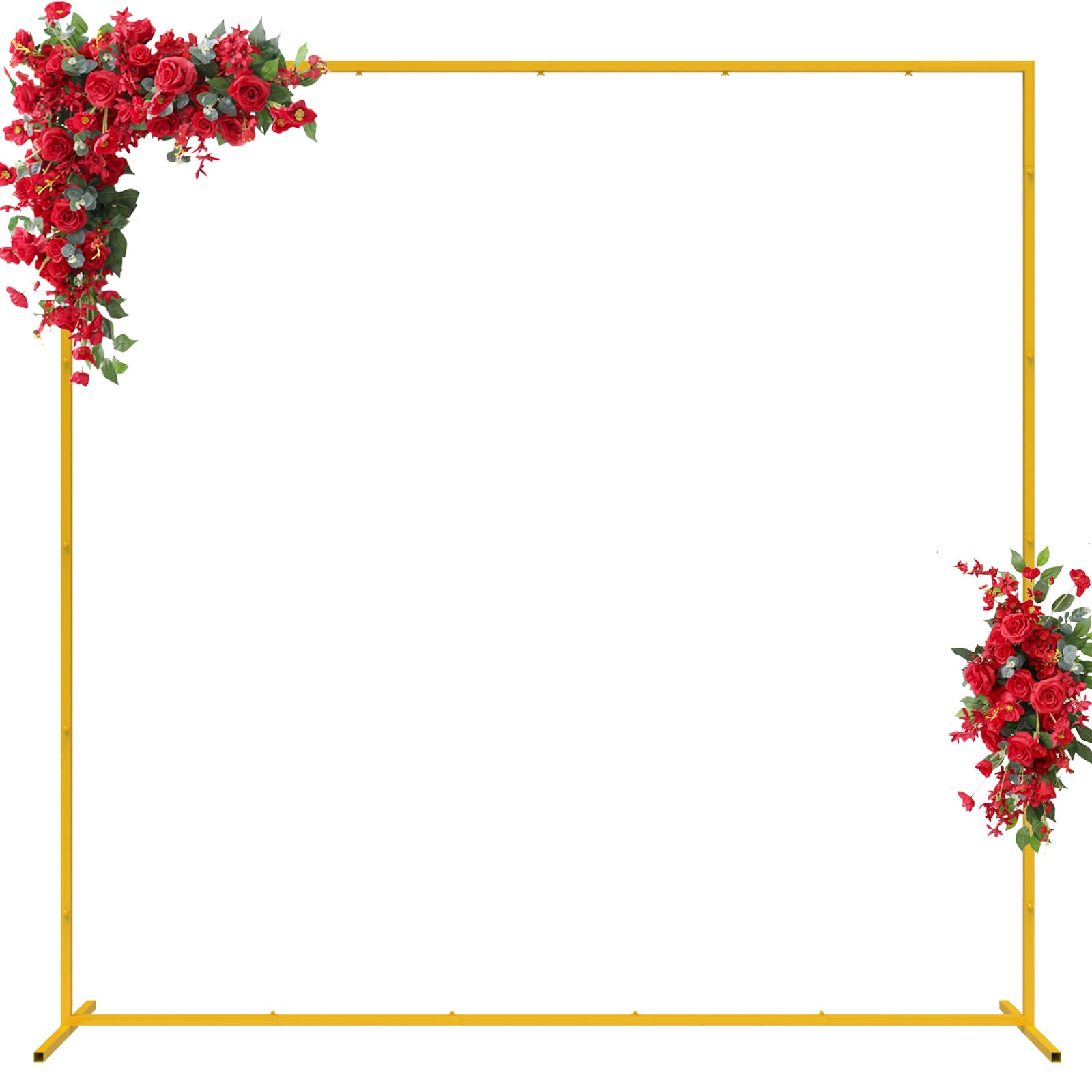 - 【Wedding Arches for Ceremony】Classy square shape and solid metallic gold construction of square gold metal arch backdrop stand will give you a robust base for an epic background for celebration. Decorate with flowers, greenery, garlands, Led lights, tulle swags, silk flowers, vines to make breathtaking backdrops for your special day. Available both indoors and outdoors.