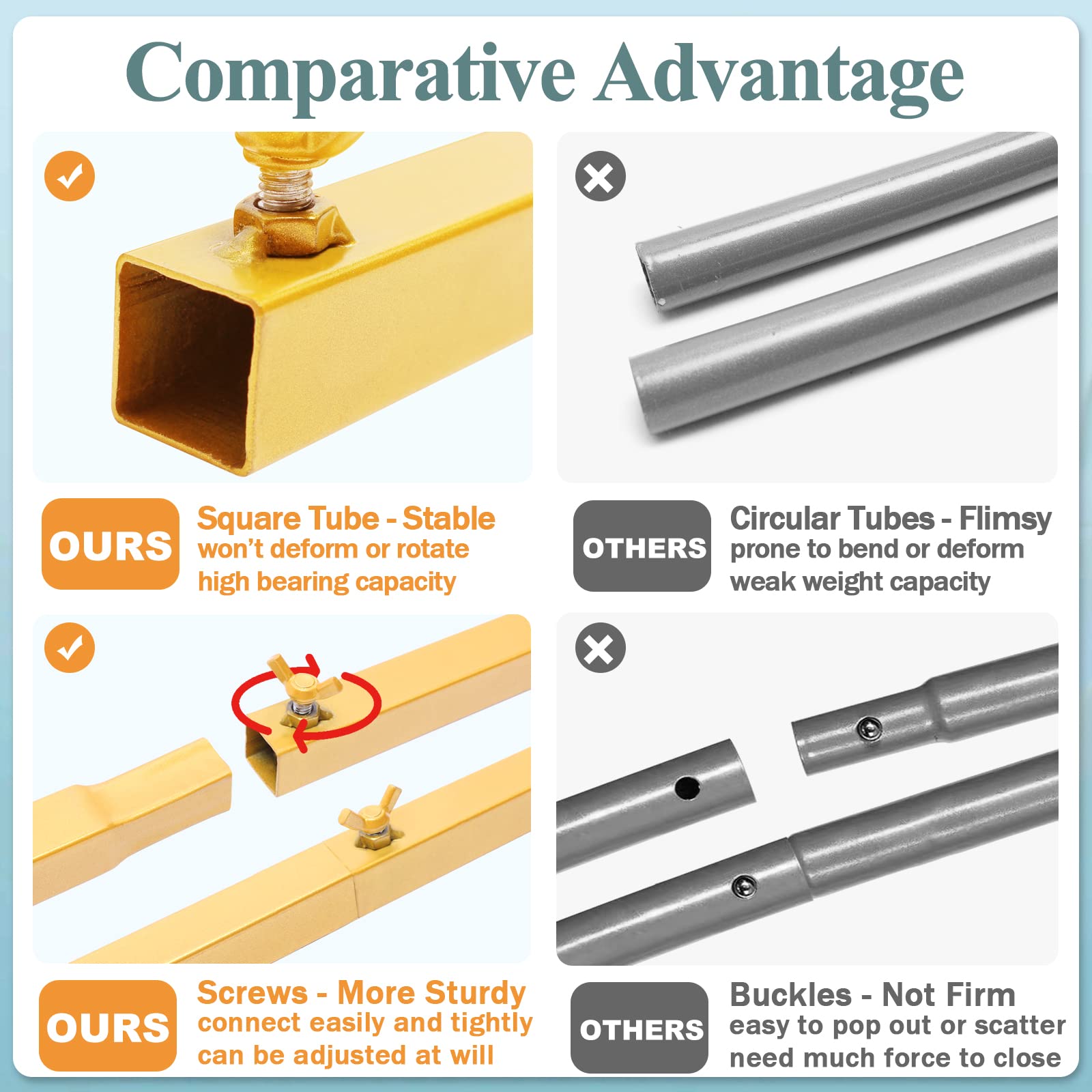 - 【Additional Crossbar】Built with a cross bar to reinforce its stabilities, pretty strong and tough for holding elements. Portable to space wedding arch stand at your will. Good ideas for you to get a fresh new atmosphere when you need to change the old life style. The square arch is stable on it's own as long as the wing nuts screws that keep it together are secured and tight.