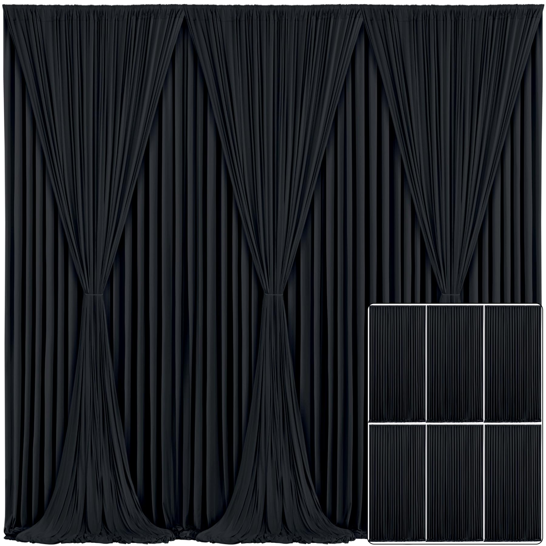 6 Panels Black Backdrop Curtain for Parties Wrinkle Free Black Photo Curtains Backdrop Drapes Fabric Decoration for Birthday Party Wedding 30ft(W) x 10ft(H)