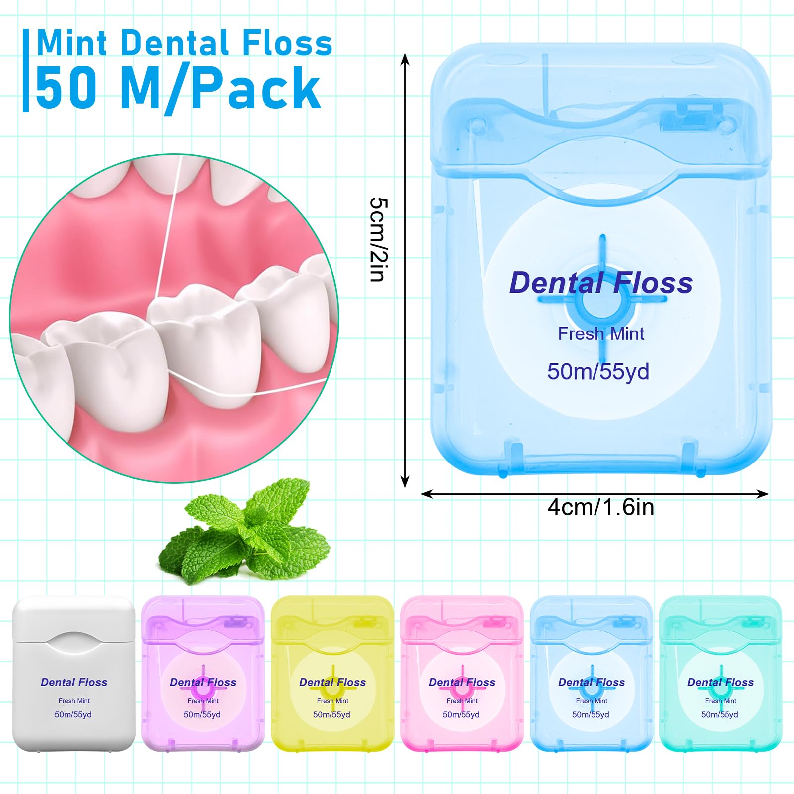 60 Pack Mint Flavored Dental Floss Bulk, 50m Each Travel Oral Care Dental Floss for Teeth and Gum Protection (Multicolor)