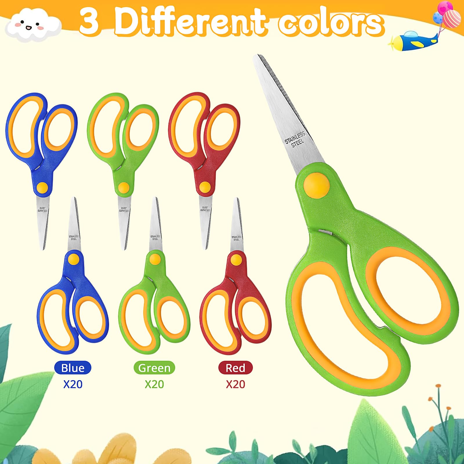 - School Supplies Essentials: You will receive 60 pieces school scissors, available in 3 colors, including red, blue and green, making them an ideal choice for the classroom with elementary students or as kids kindergarten scissors