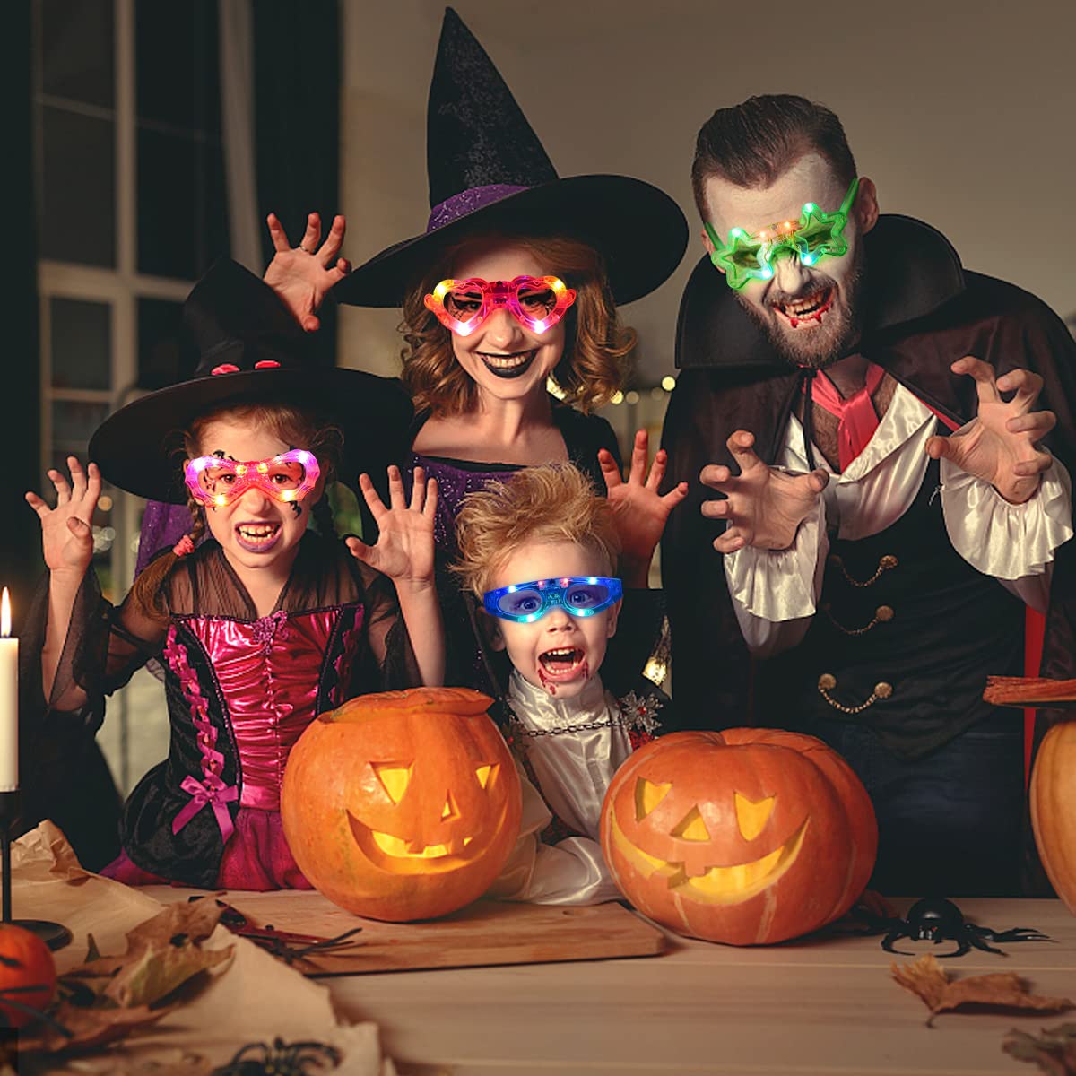 63 Pcs LED Glasses 7 shapes 6 LED Glow In The Dark Party Supplies Favor for Kids Adults shutter heart round star butterfly Glow Sticks Light Up Glasses fit Birthday Halloween Christmas Valentine's Day