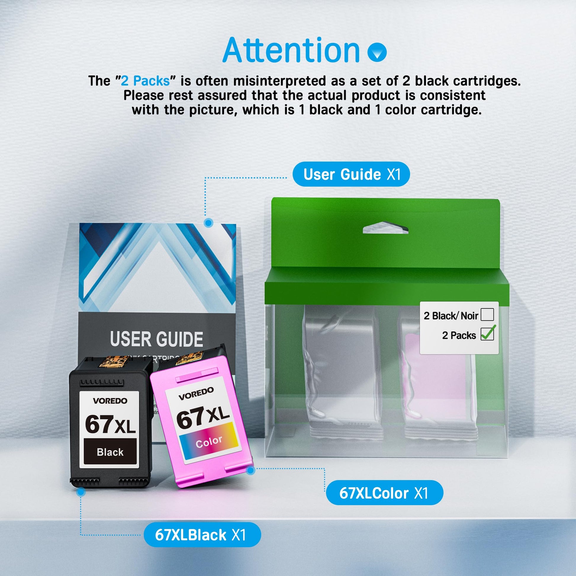 - Package Contents: 1 x black ink cartridge for hp 67 xl black ink cartridges, 1 x color ink cartridges for hp 67xl , 1 x User Guide