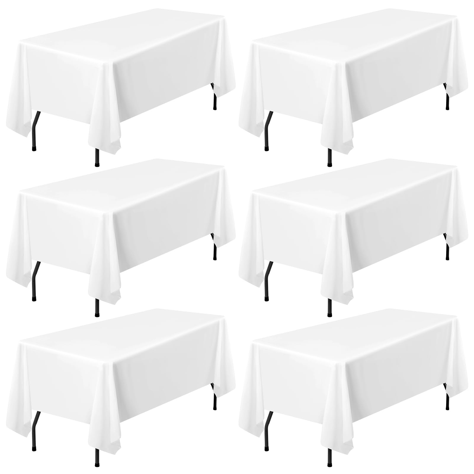 - Package Included: White Tablecloths for Rectangle Tables measures 𝟔𝟎*𝟏𝟎𝟐𝐢𝐧𝐜𝐡. Fits all standard up to 6ft tables. you will get pack of 6 Premium Polyester Rectangle Tablecloths,Budget Friendly, Durable for repeat use.