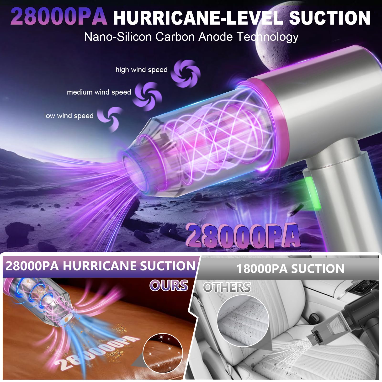 7-In-1 US-Designed Car Vacuum Cleaner【Powerful Brushless Motor | 28,000 Pa Suction】【5.0 Graphene Battery | Lasting Endurance】Handheld Vacuum Cordless for Home,Office, and Pet Hair-N3 (Silver and Pink)