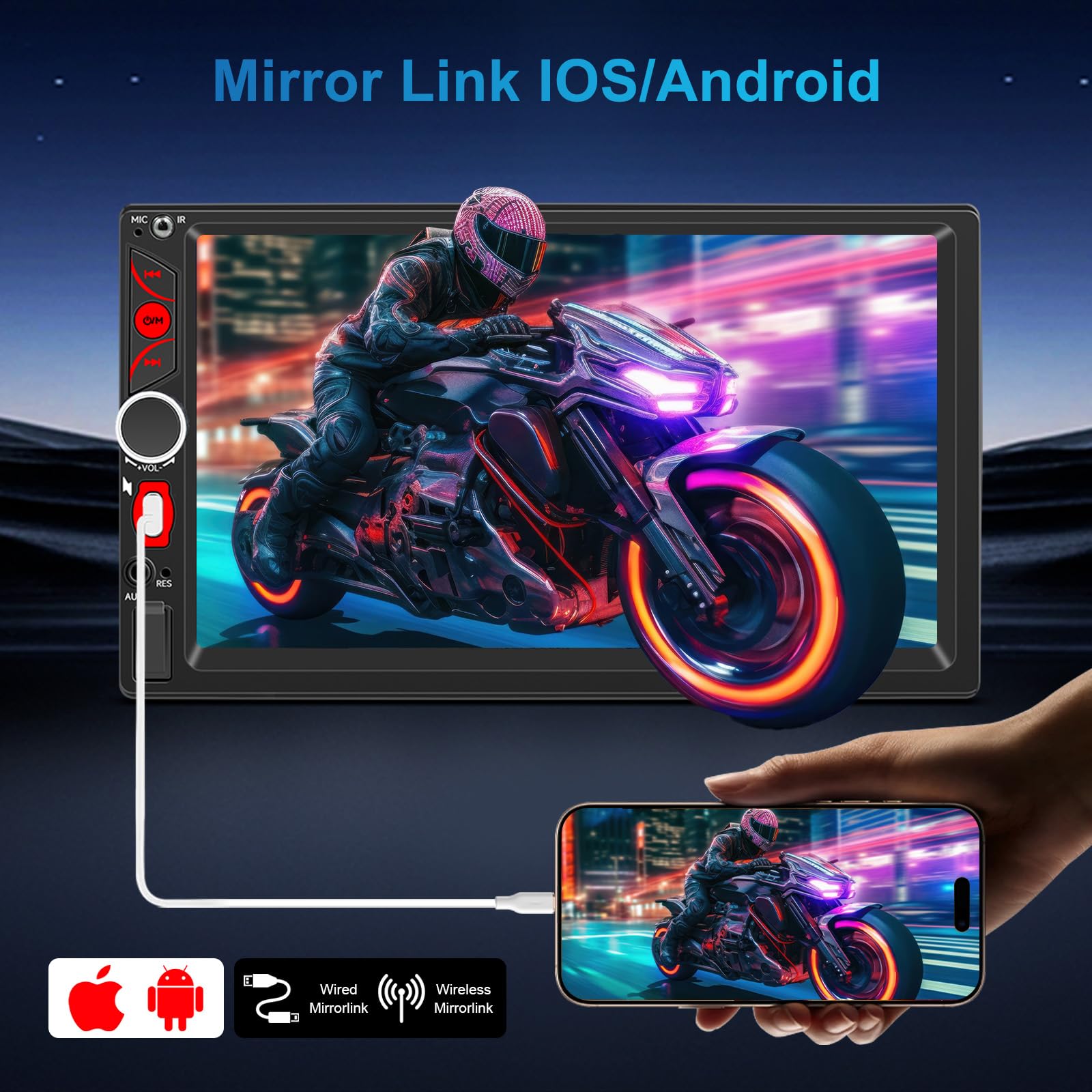 - 【Double Din Car Stereo Phone Mirror Link】The wireless carplay stereo supports mirror linking on both Android and IOS systems. Connect your smartphone to the car stereo via wired or wireless connection and sync videos, music, navigation and other content to the car stereo, enriching your driving experience.